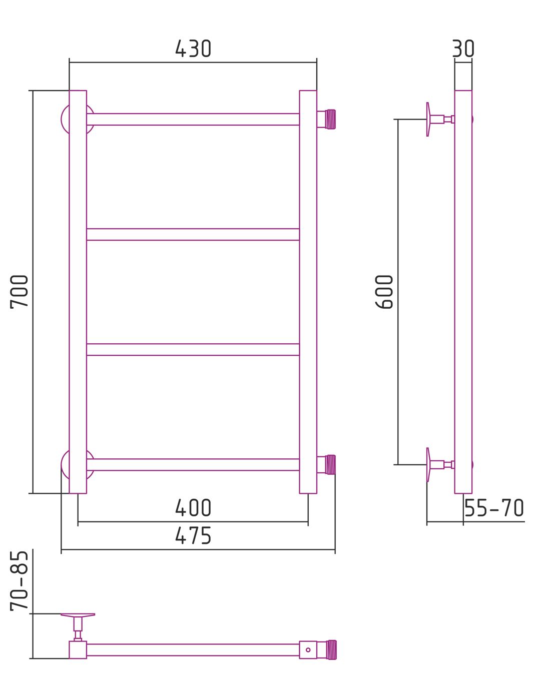 Полотенцесушитель водяной Стилье Версия-КБ 600х400 (4) П 20х20