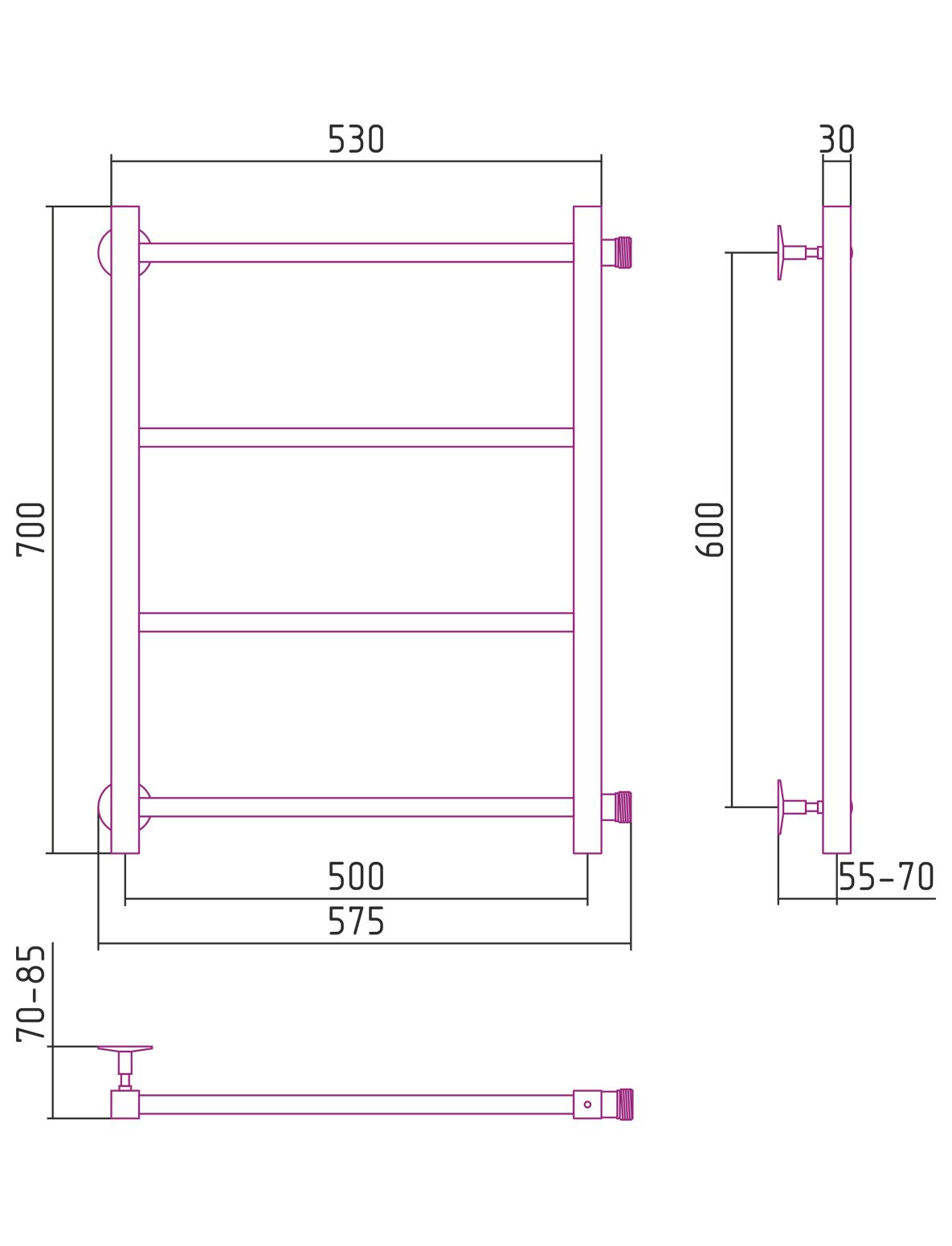 Полотенцесушитель водяной Стилье Версия-КБ 600х500 (4) П 20х20