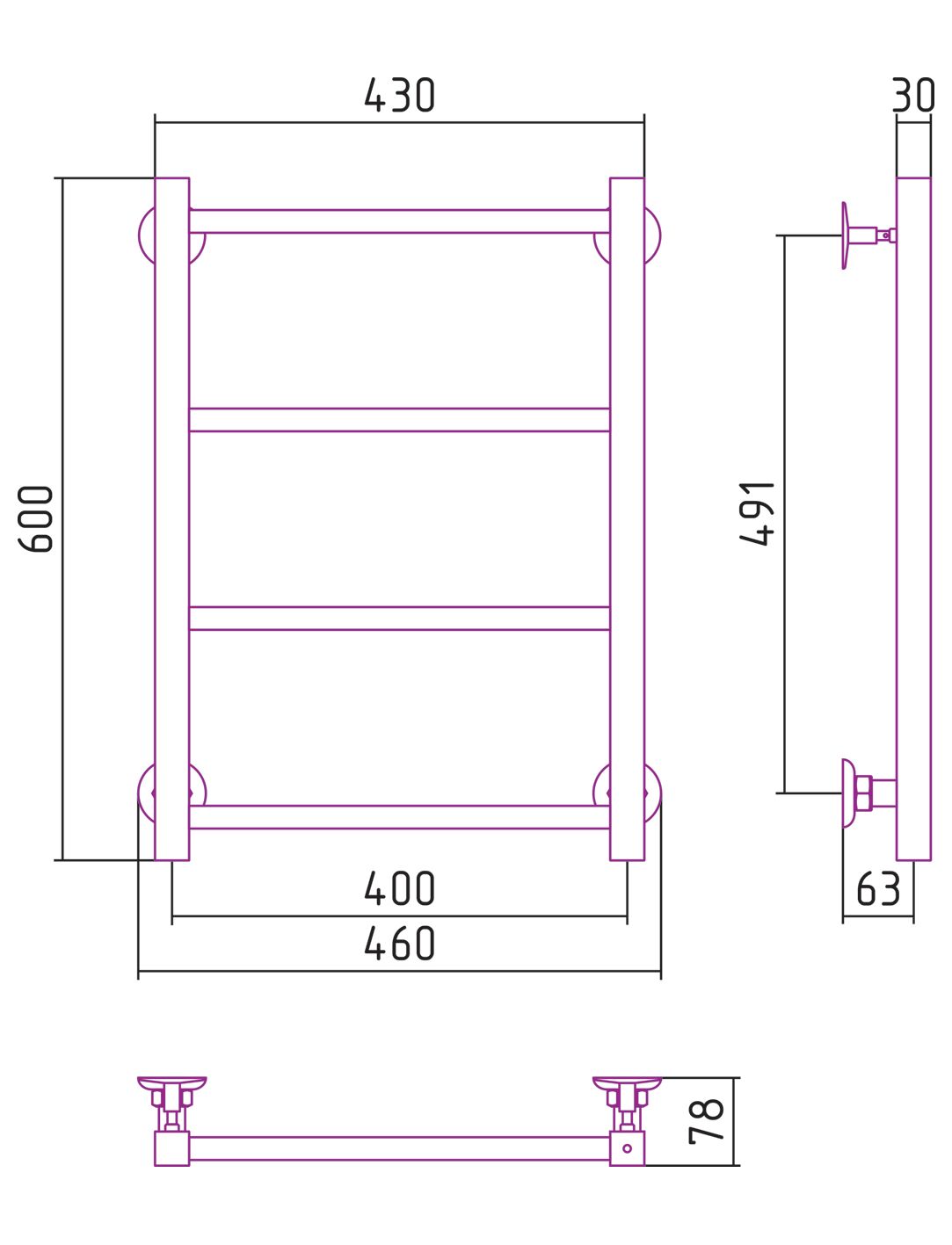Полотенцесушитель водяной Стилье Версия-КН 600х400 (4) П 20х20