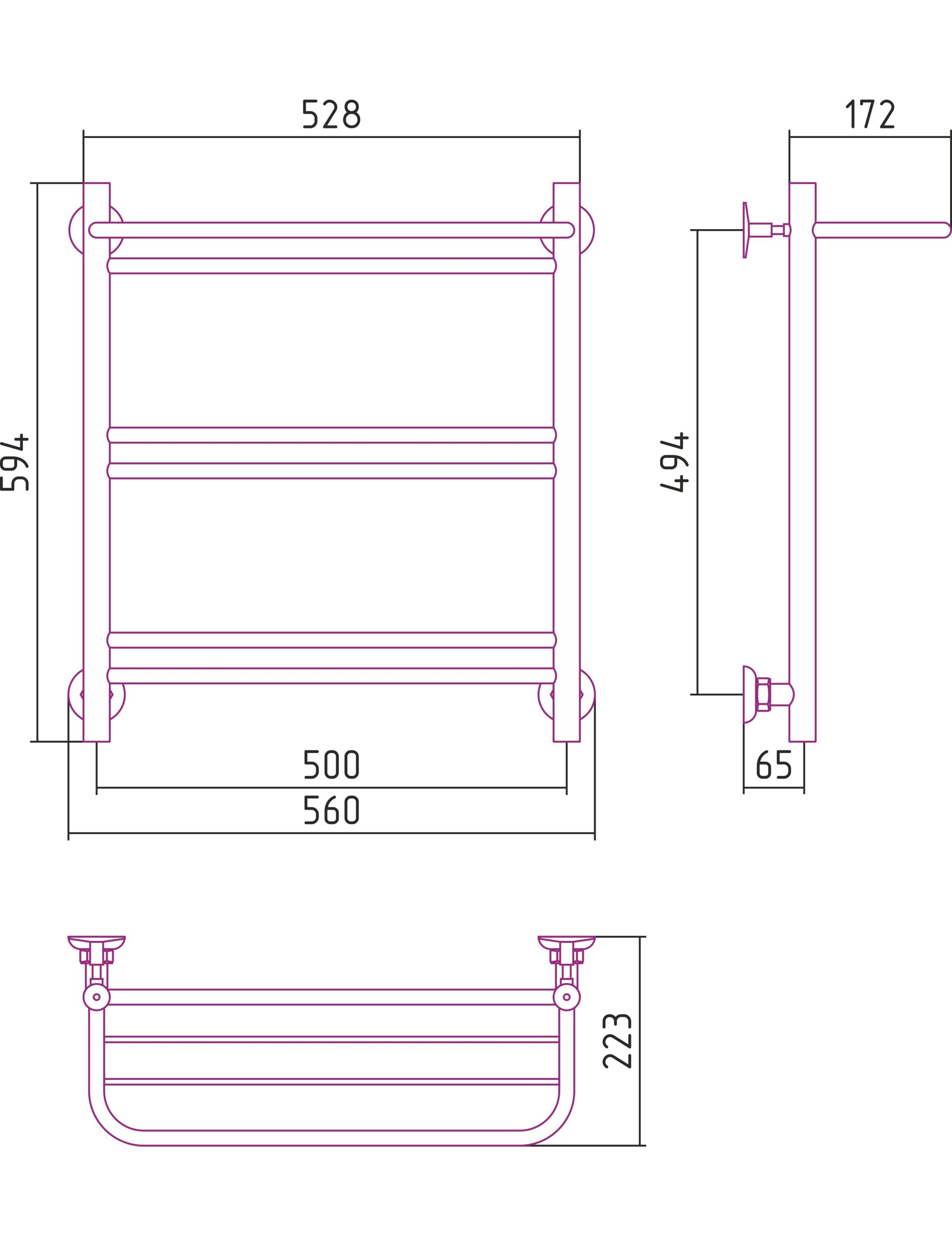 Полотенцесушитель водяной Стилье Версия-Н1 600х500 (Полка+1+2+2) П 16