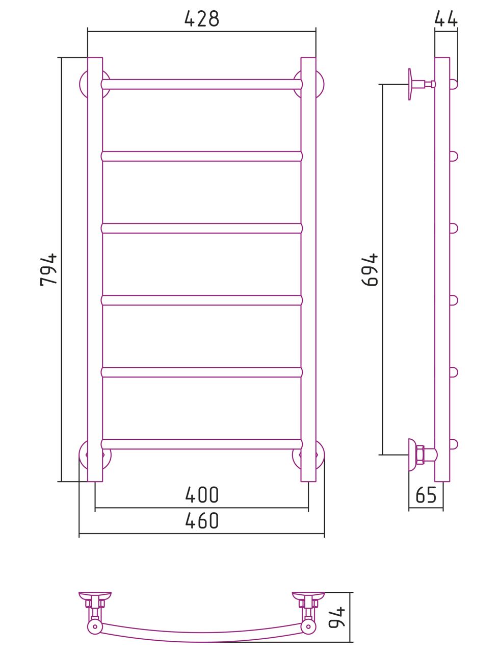 Полотенцесушитель водяной Стилье Версия-Н2 800х400 (6) Г 18