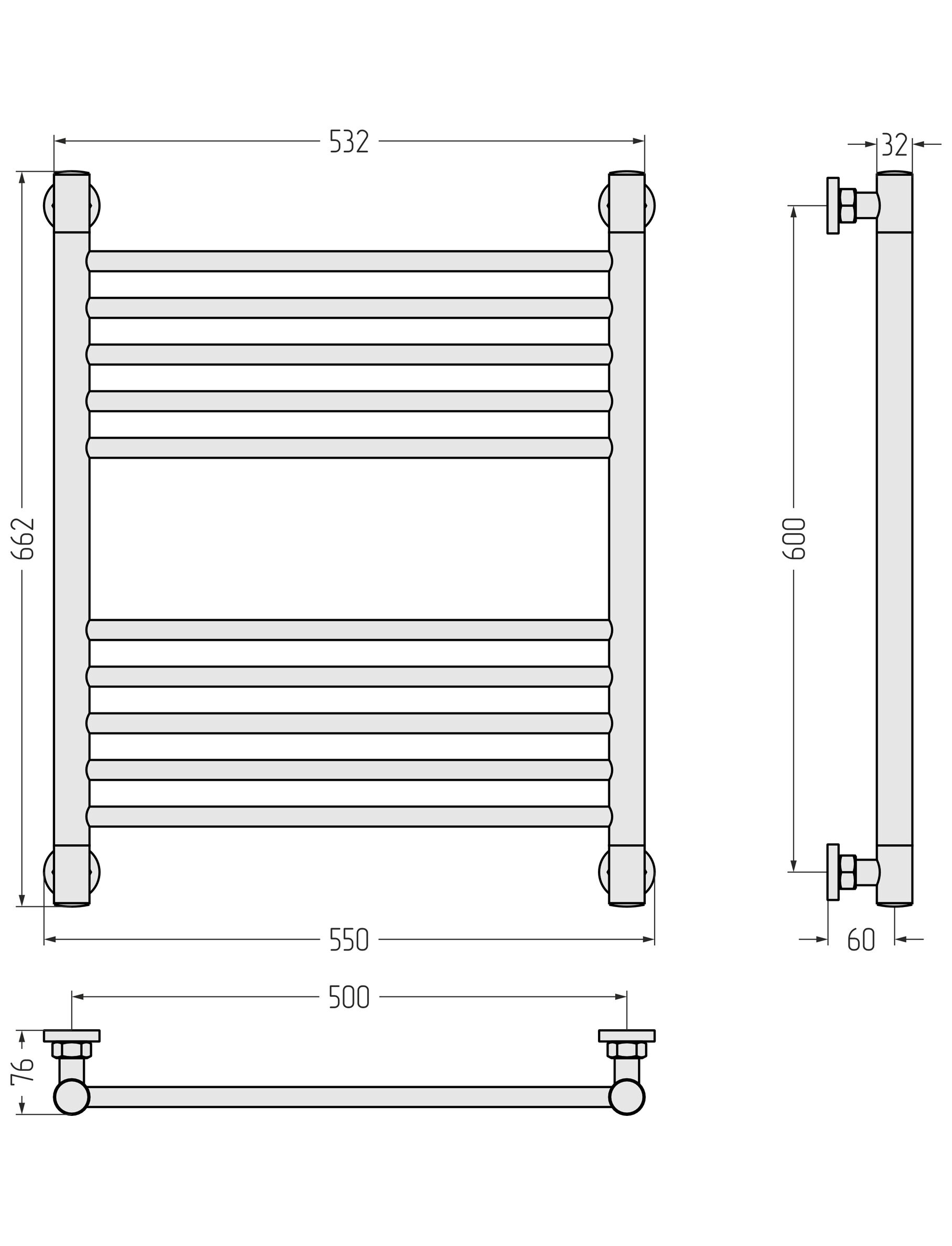 Полотенцесушитель водяной Сунержа Богема+ прямая 600х500