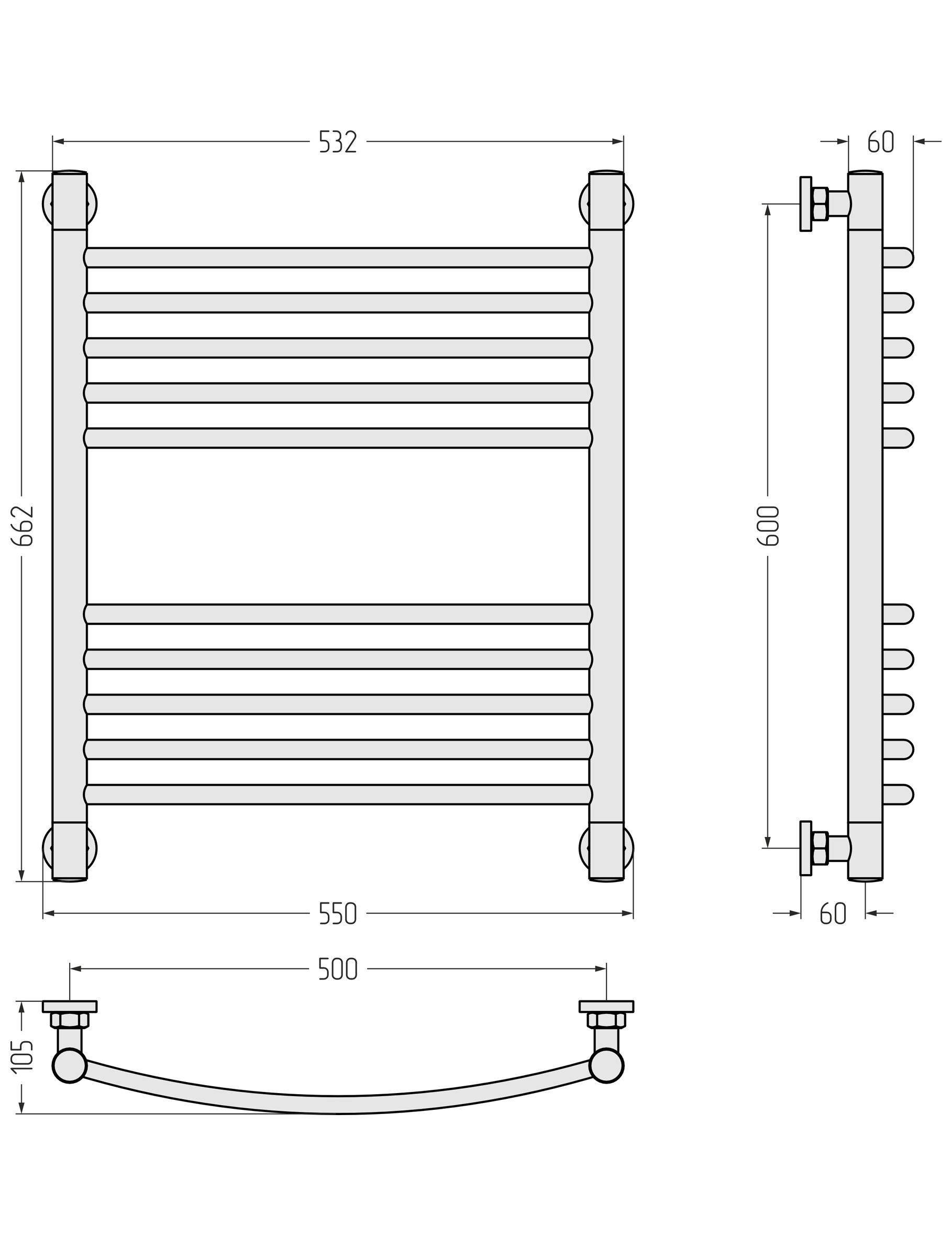 Полотенцесушитель водяной Сунержа Богема+ выгнутая 600х500