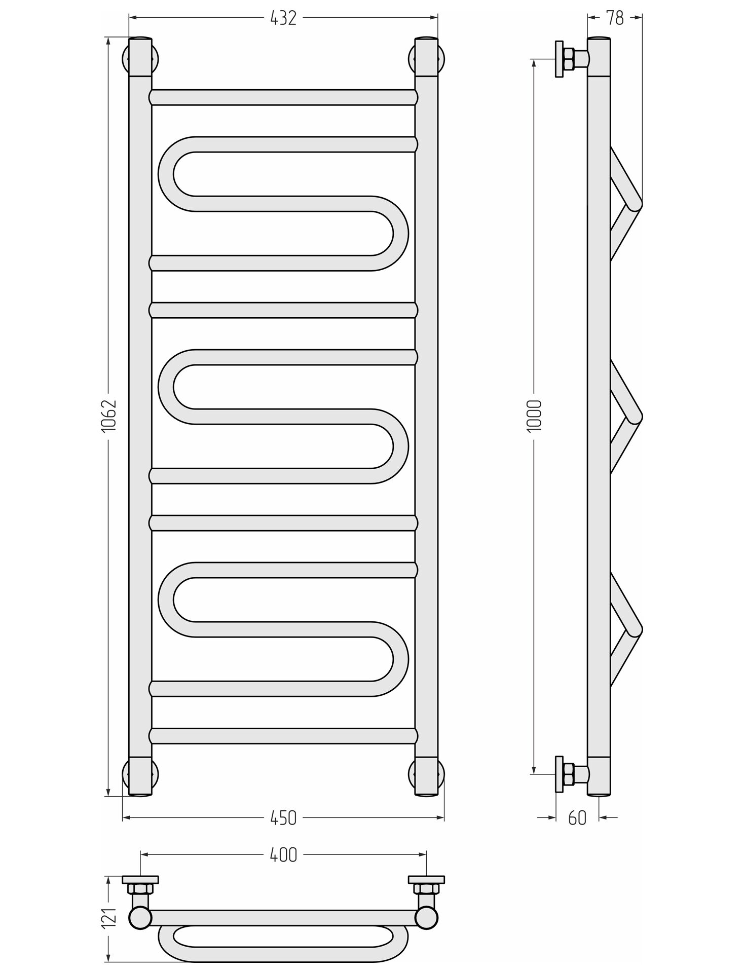 Полотенцесушитель водяной Сунержа Элегия+ 1000х400