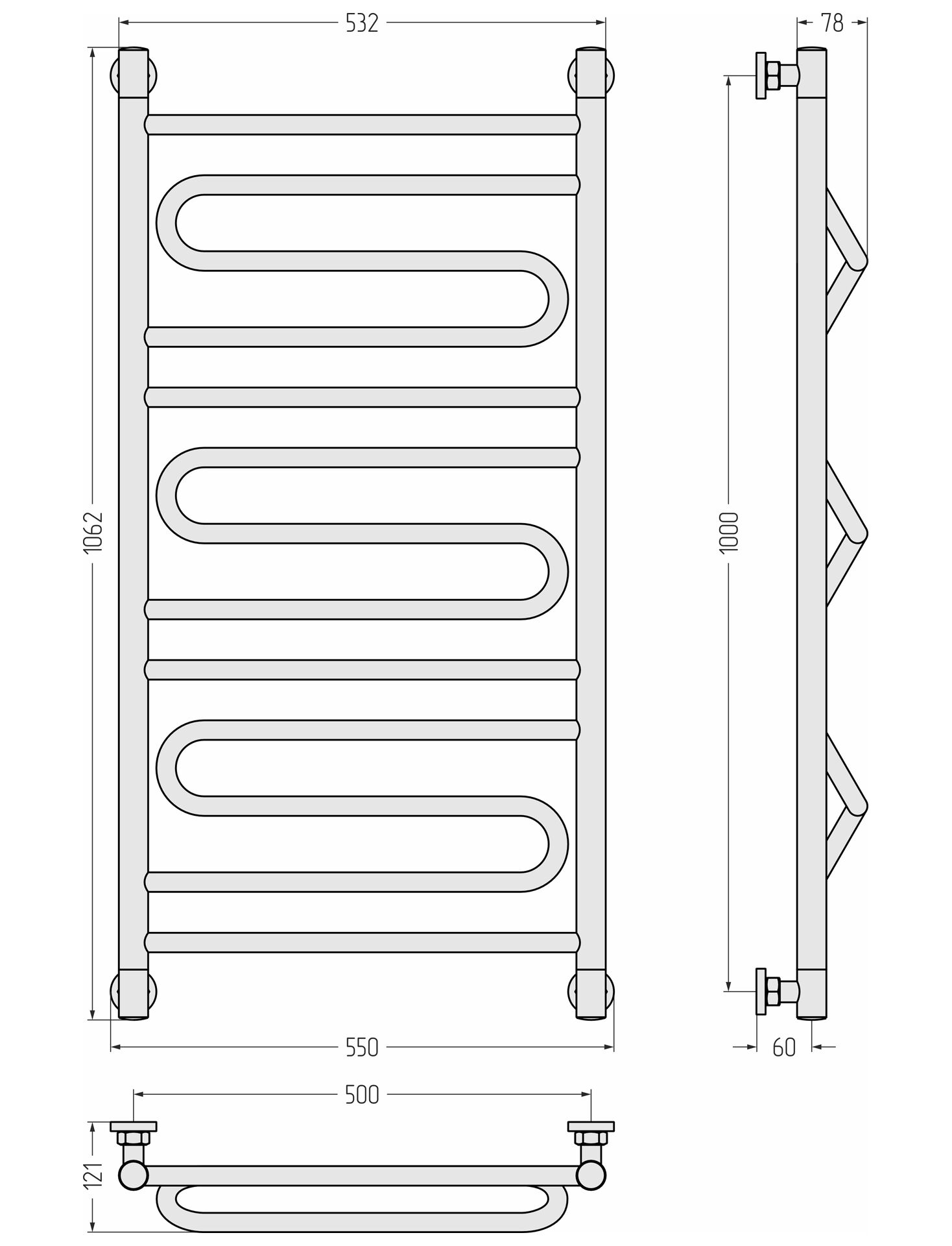 Полотенцесушитель водяной Сунержа Элегия+ 1000х500
