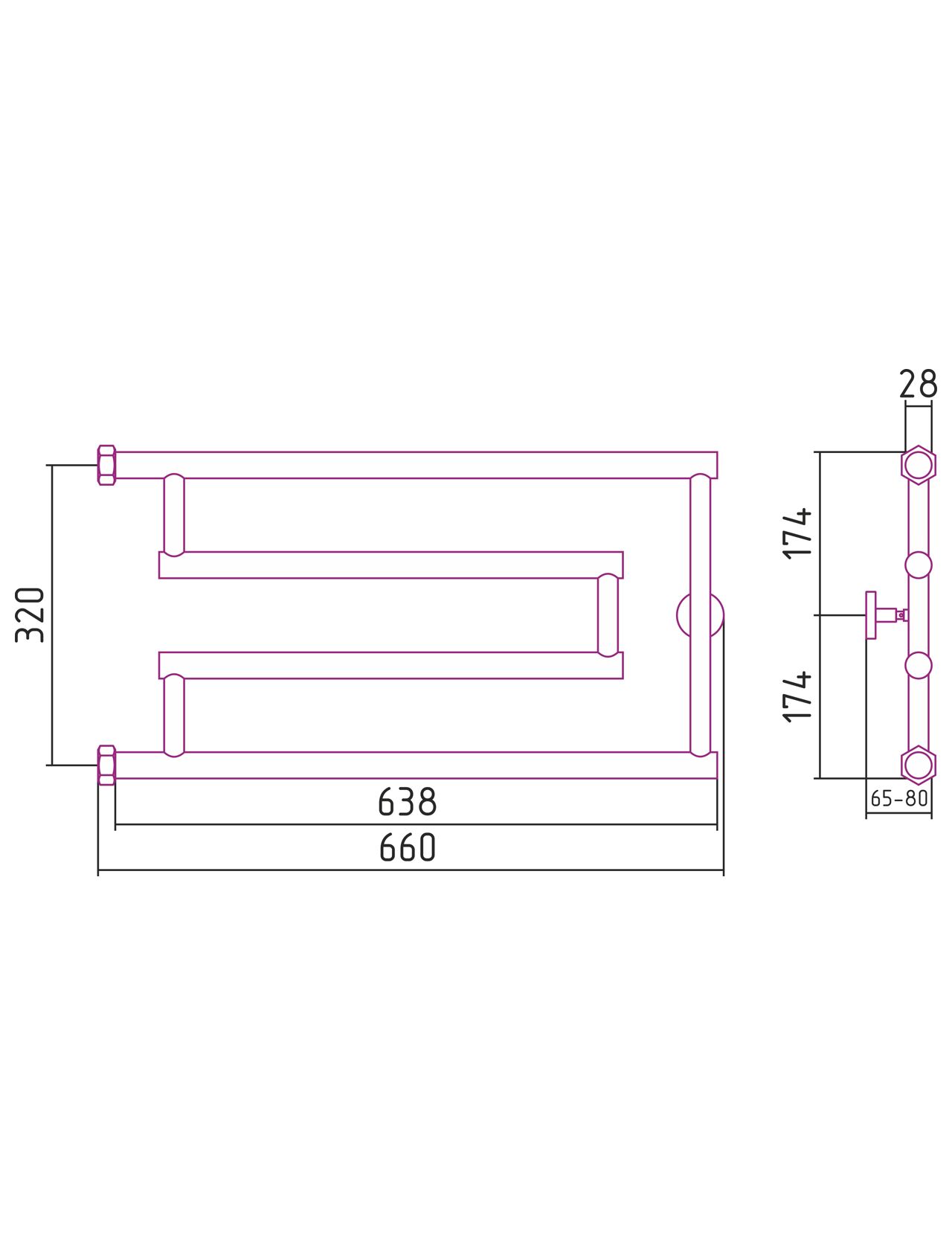 Полотенцесушитель водяной Сунержа High-Tech model "G+" 320х650