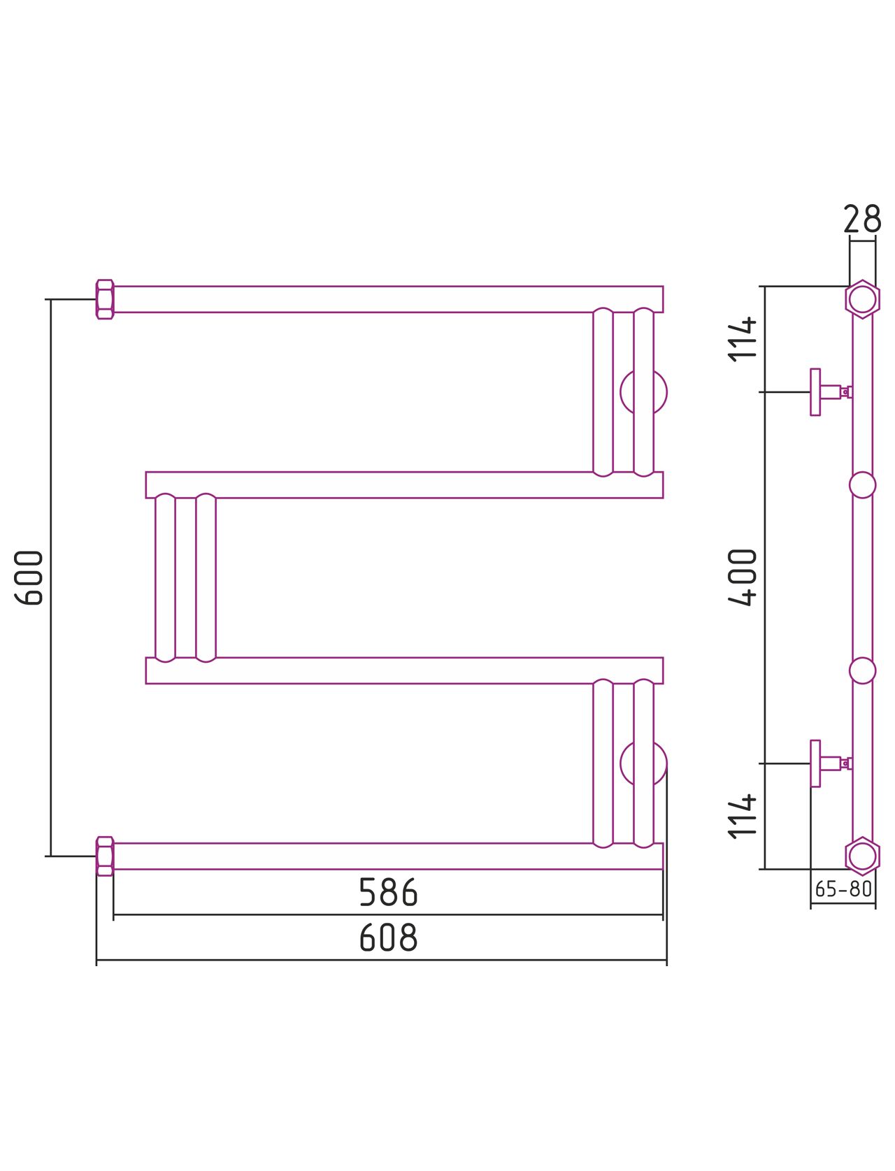 Полотенцесушитель водяной Сунержа High-Tech model "M+" 600х600