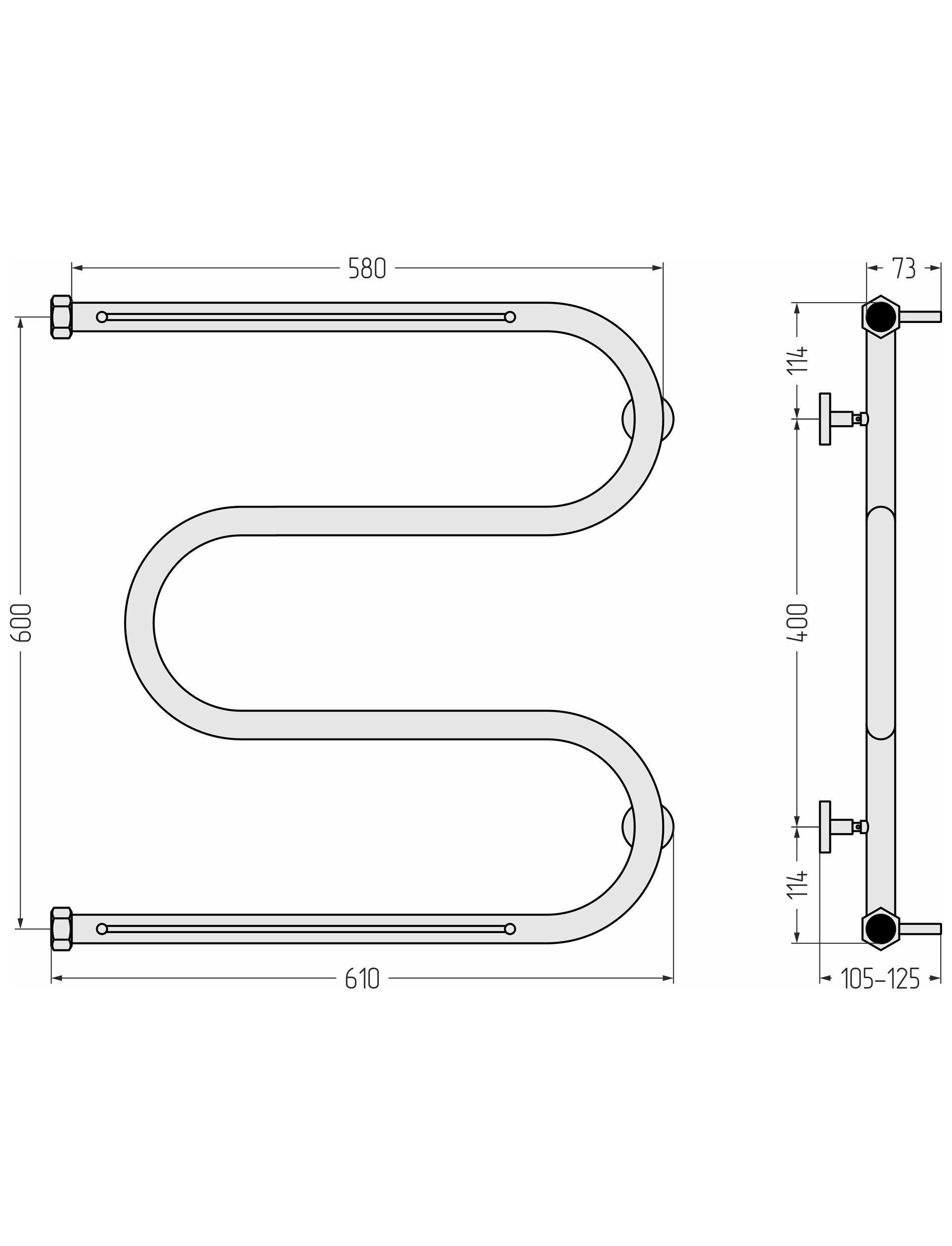 Полотенцесушитель водяной Сунержа М-образный 2 полки 600х600
