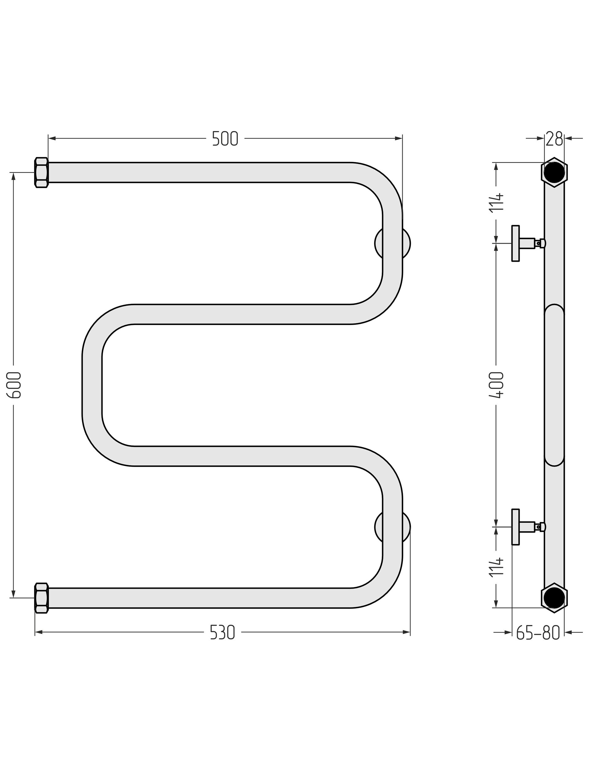 Полотенцесушитель водяной Сунержа Ш-образный 600х500