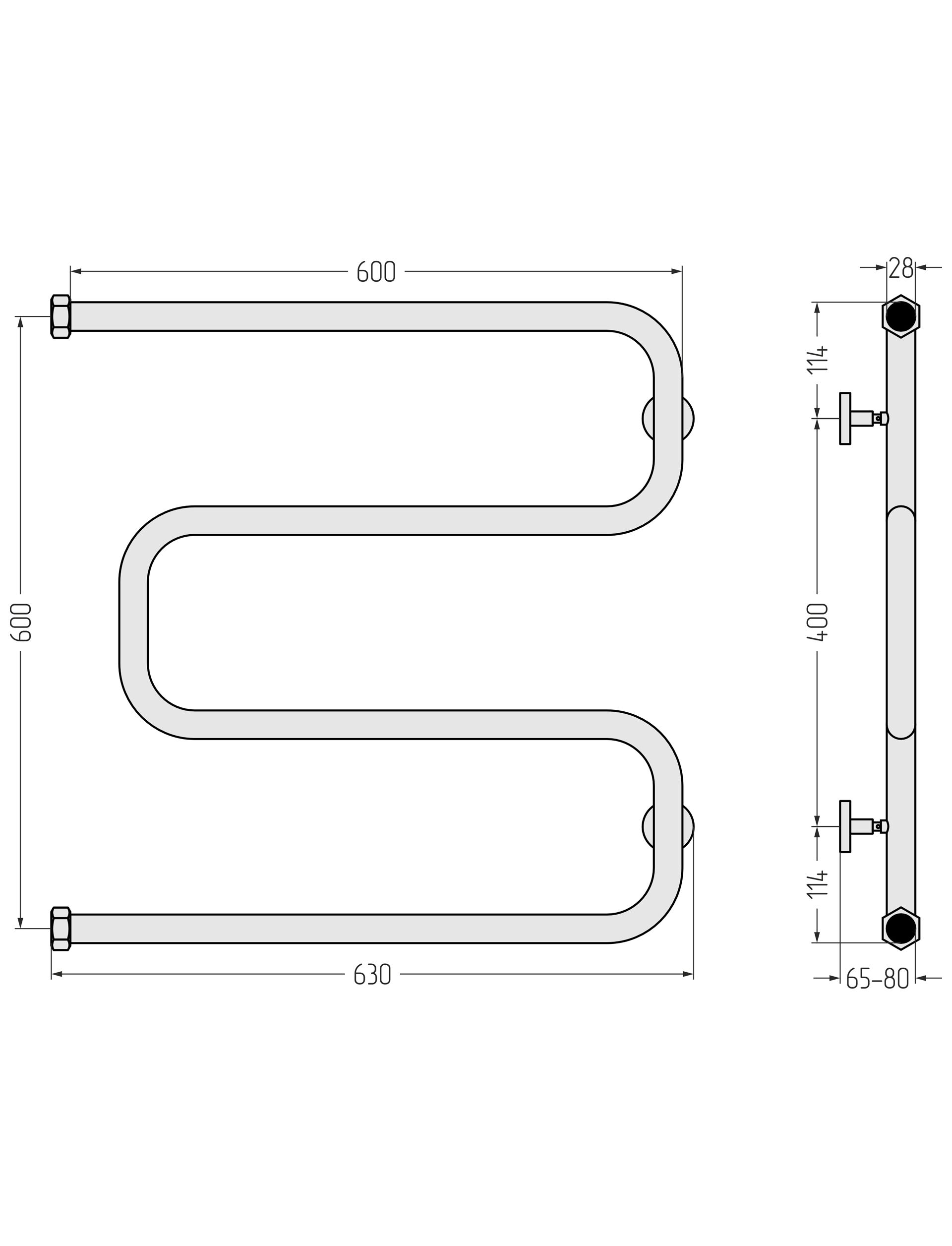 Полотенцесушитель водяной Сунержа Ш-образный 600х600