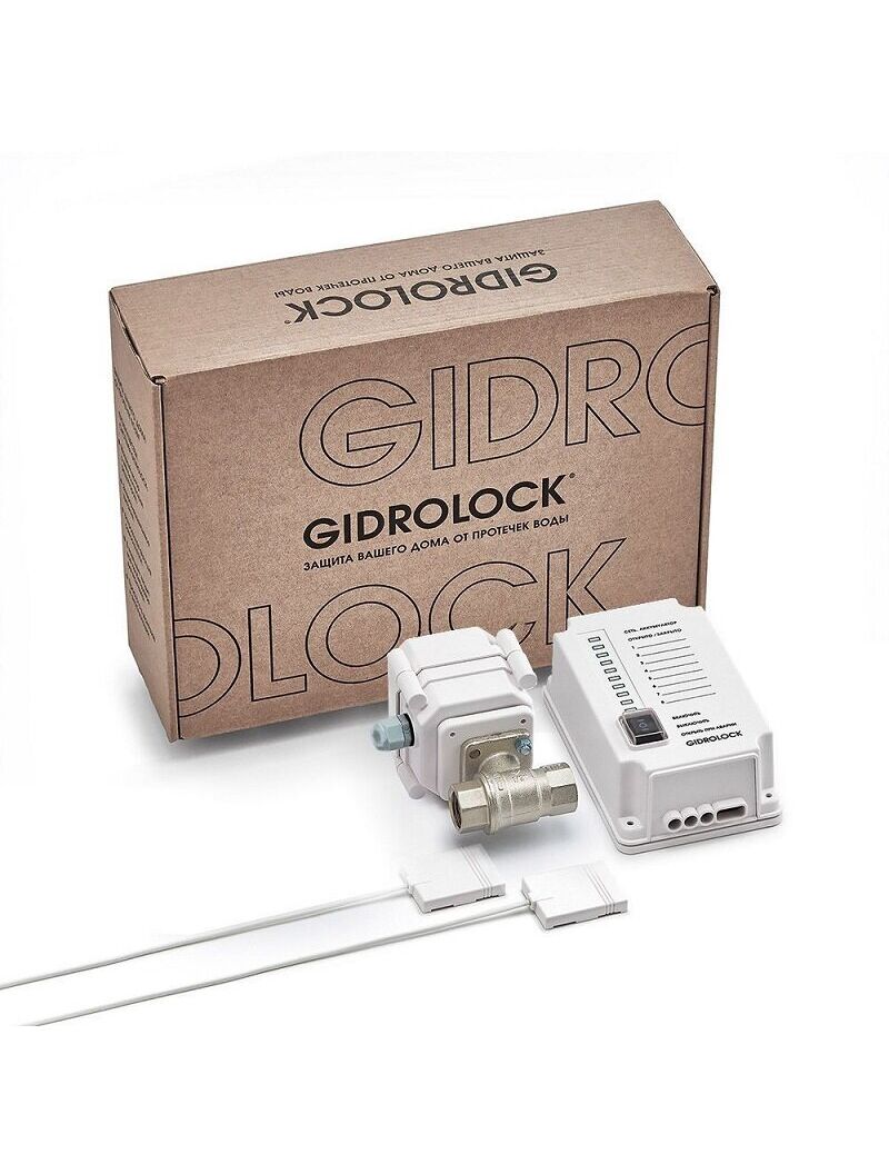 Система контроля протечки воды Gidrolock cottage Bugatti 1/2, 31101121, 2 проводных датчика, блок управления Premium, 1 ШЭП Ultimate BS 12B 1/2 дюйма