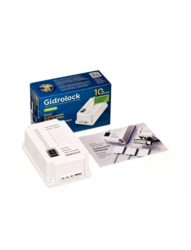 Система контроля протечки воды Gidrolock cottage Bugatti 3/4, 31101122, 2 проводных датчика, блок управления Premium, 1 ШЭП Ultimate BS 12B 3/4 дюйма