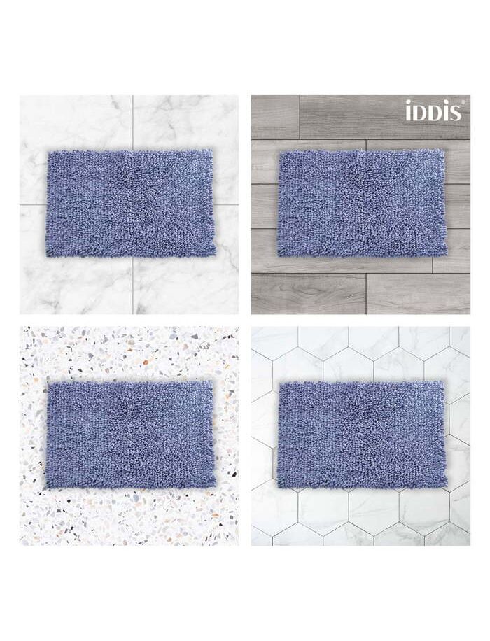 Плюшевый коврик для ванной василькового цвета с очень мягким и приятным на ощупь высоким ворсом (3,5 см) в виде плотных петель. Он отлично сохраняет тепло и держит форму, сохраняя красивый внешний вид. Коврик подойдет для ванной и туалета.• Этот коврик в ванную противоскользящий: нескользящая основа из экологичного полимерного материала (Hotmelt) не пропускает влагу и не впитывает запахи.