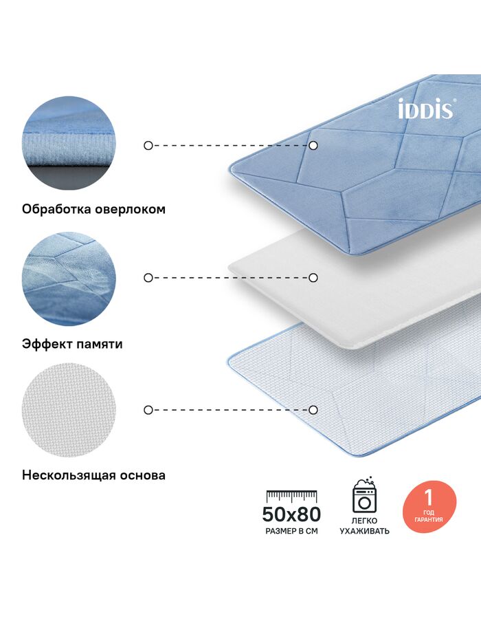 Коврик для ванной комнаты, 50*80 см, полиэстер с запоминающей пеной, IDDIS, B24P580i12