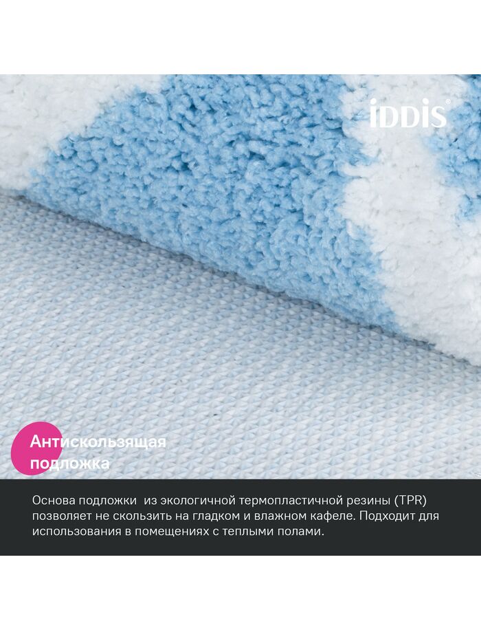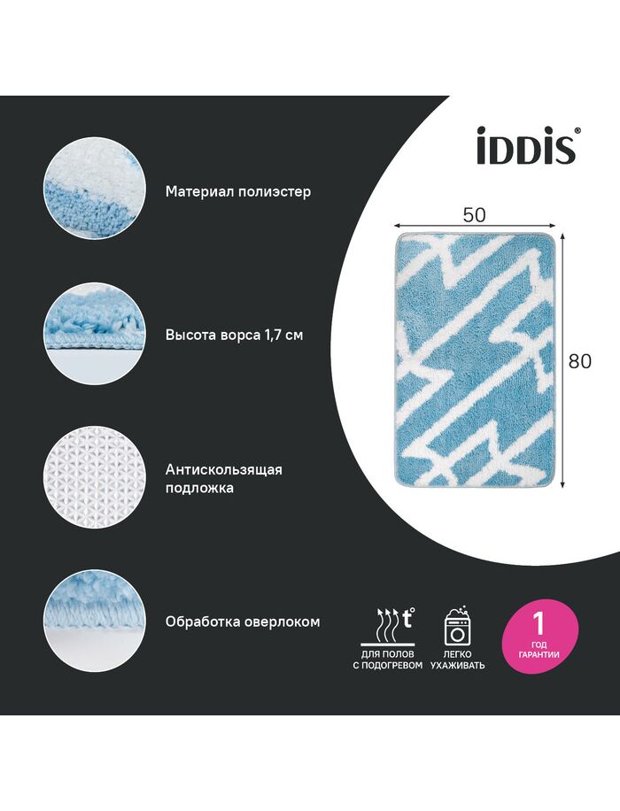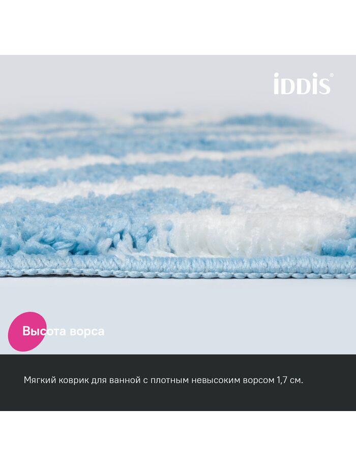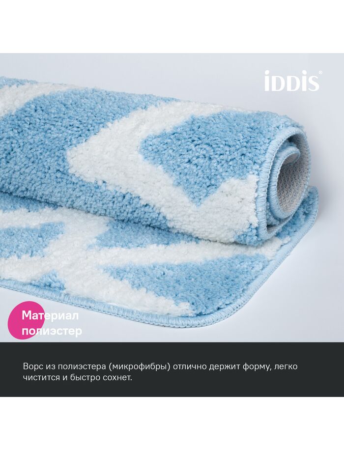 Коврик для ванной комнаты, 50x80, микрофибра, голубой, IDDIS, BPQS02Mi12