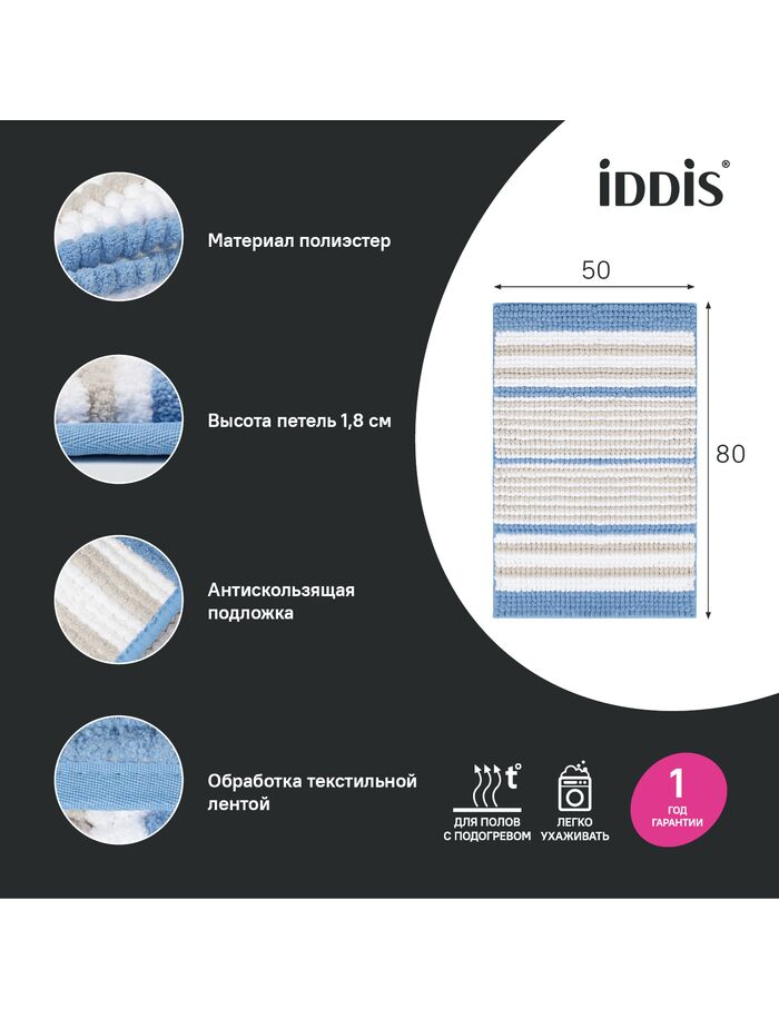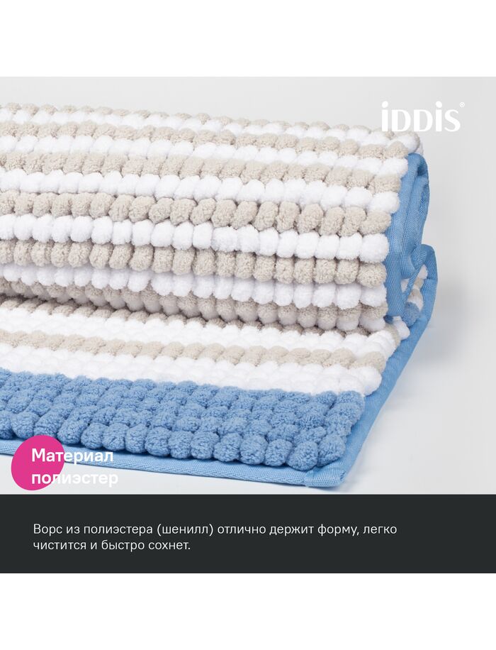 Коврик для ванной комнаты, 50x80, шенилл, голубой, IDDIS, BC05P58i12