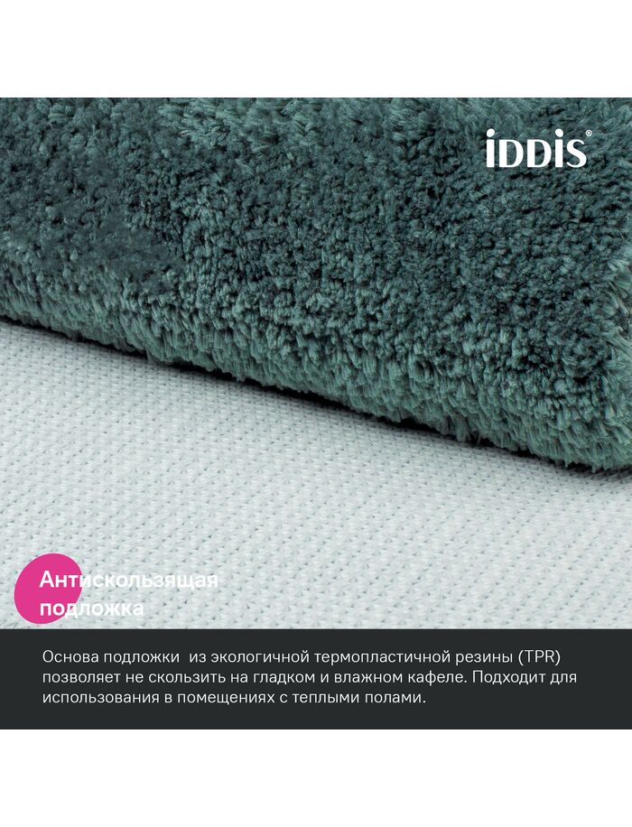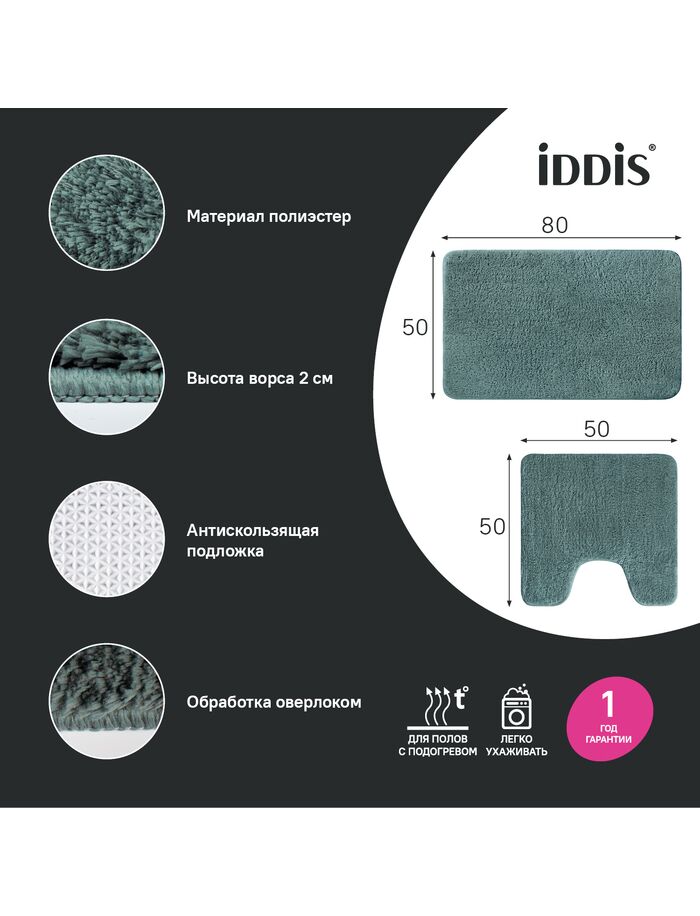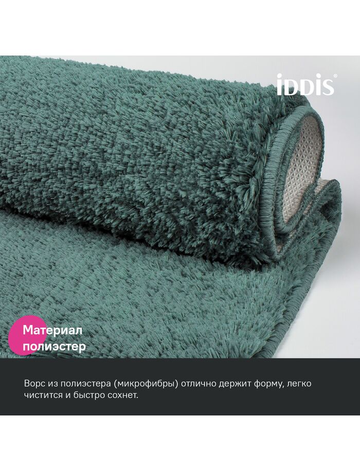 Набор ковриков для ванной комнаты, 50х80 + 50х50, микрофибра, темно-зеленый, IDDIS, BSET06Mi13