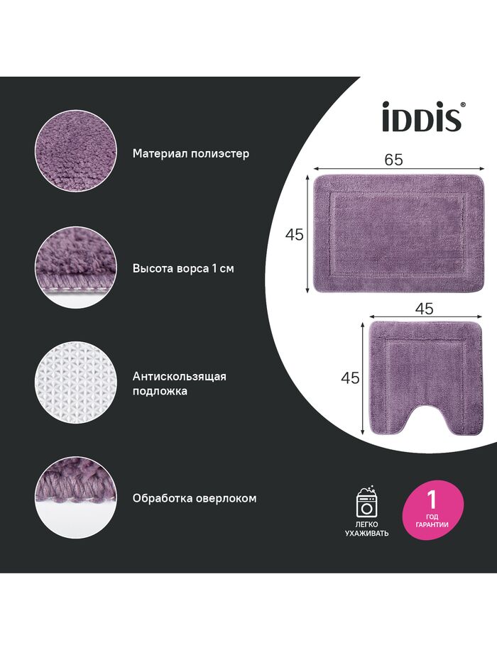 Набор ковриков для ванной комнаты, 65х45 + 45х45, микрофибра, фиолетовый, IDDIS, PSET01Mi13