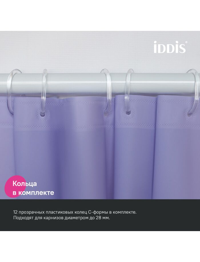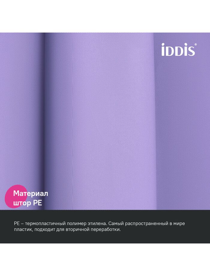 Штора для ванной, 200x180 см, PE, светло-фиолетовый, IDDIS, P08PE18i11