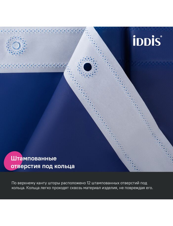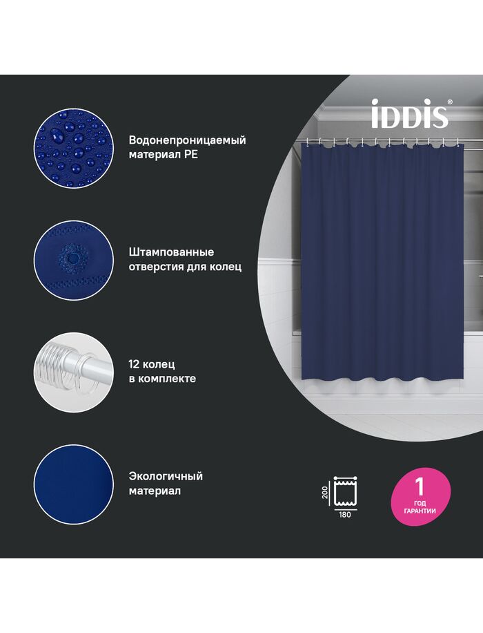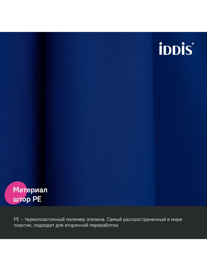 Штора для ванной, 200x180 см, PE, темно-синий, IDDIS, P05PE18i11