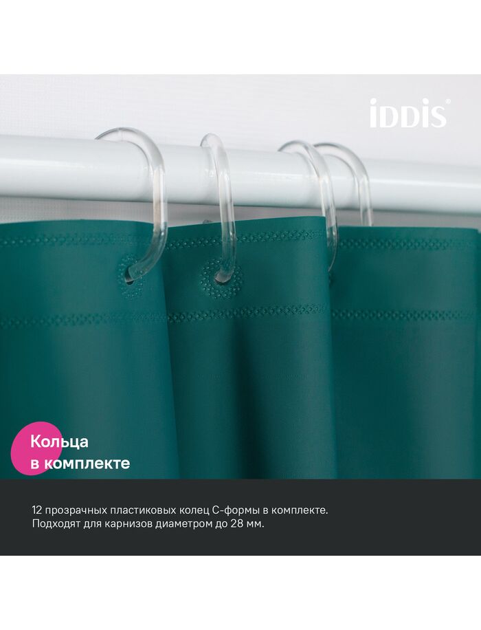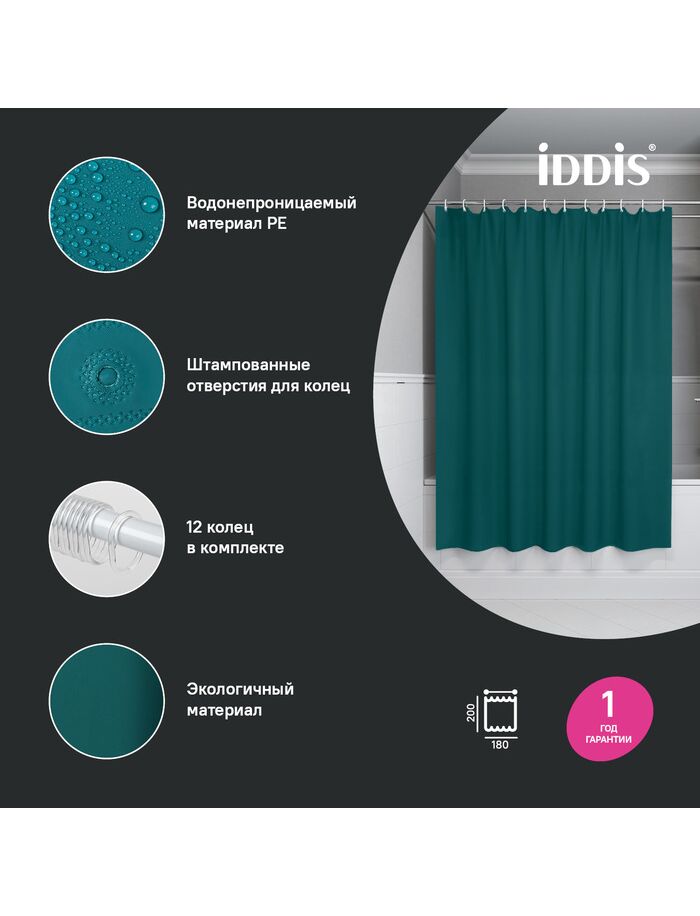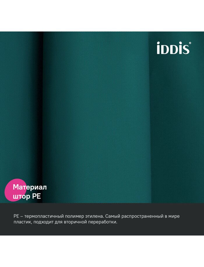 Штора для ванной, 200x180 см, PE, темно-зеленый, IDDIS, P04PE18i11