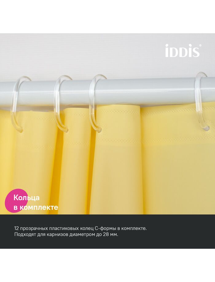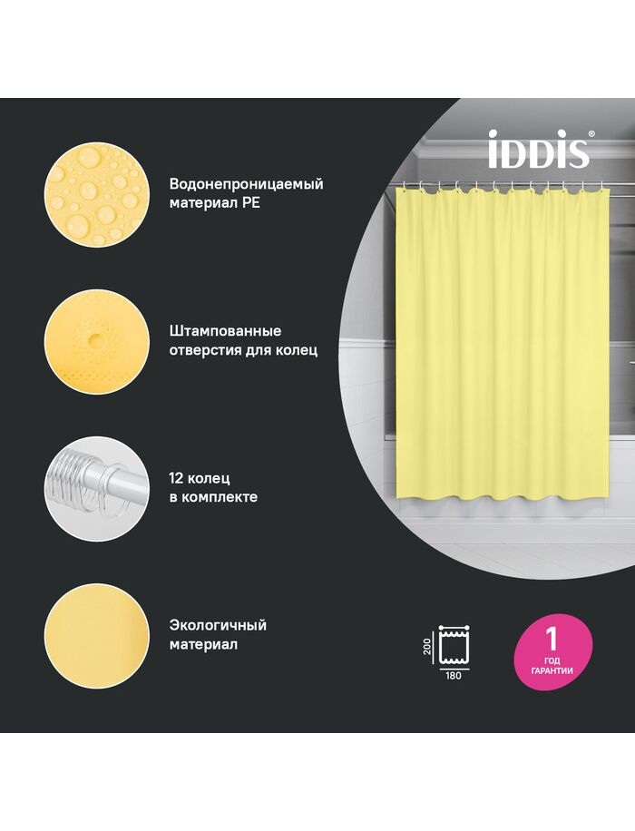 Штора для ванной, 200x180 см, PE, желтый, IDDIS, P06PE18i11