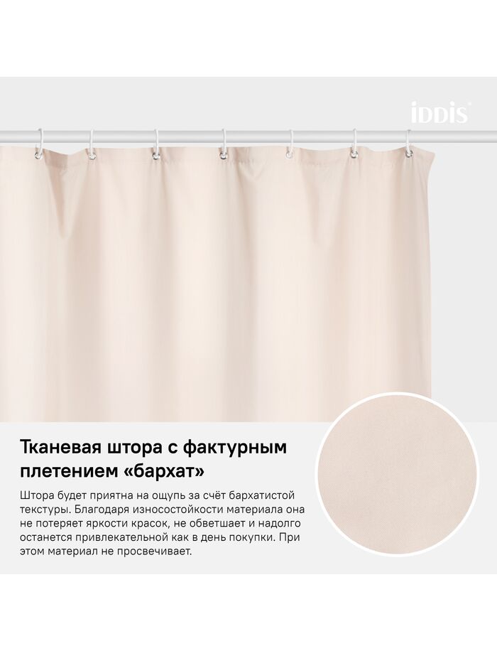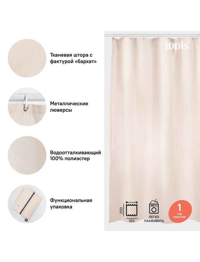 Штора для ванной комнаты, 180*200см, Полиэстер, IDDIS, B68P218i11