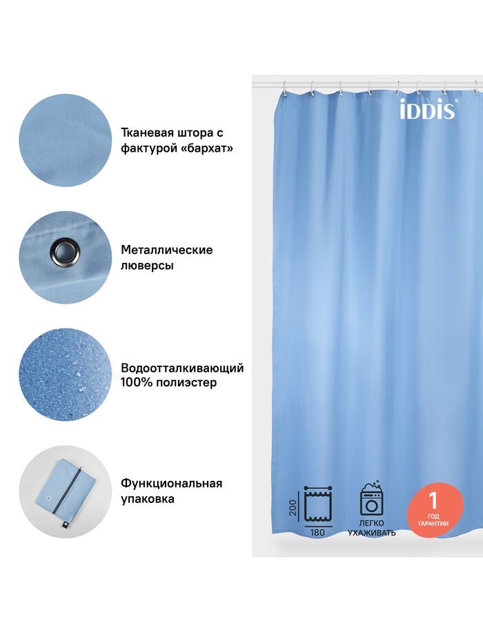Штора для ванной комнаты, 180*200см, Полиэстер, IDDIS, B70P218i11