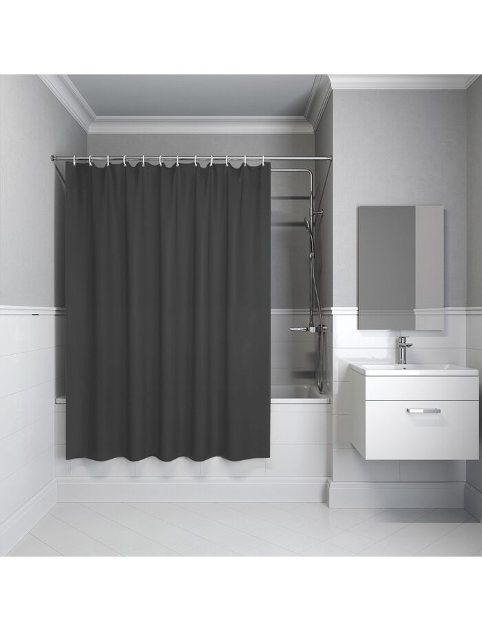 Однотонная непрозрачная штора для ванной насыщенного темно-серого цвета. Изготовлена из современного материала PEVA – мягкого, приятного на ощупь, экологичного и безвредного для здоровья термопластика (толщина 0,09 мм). • Без неприятного запаха, благодаря чему шторку для ванной можно использовать уже в день покупки.