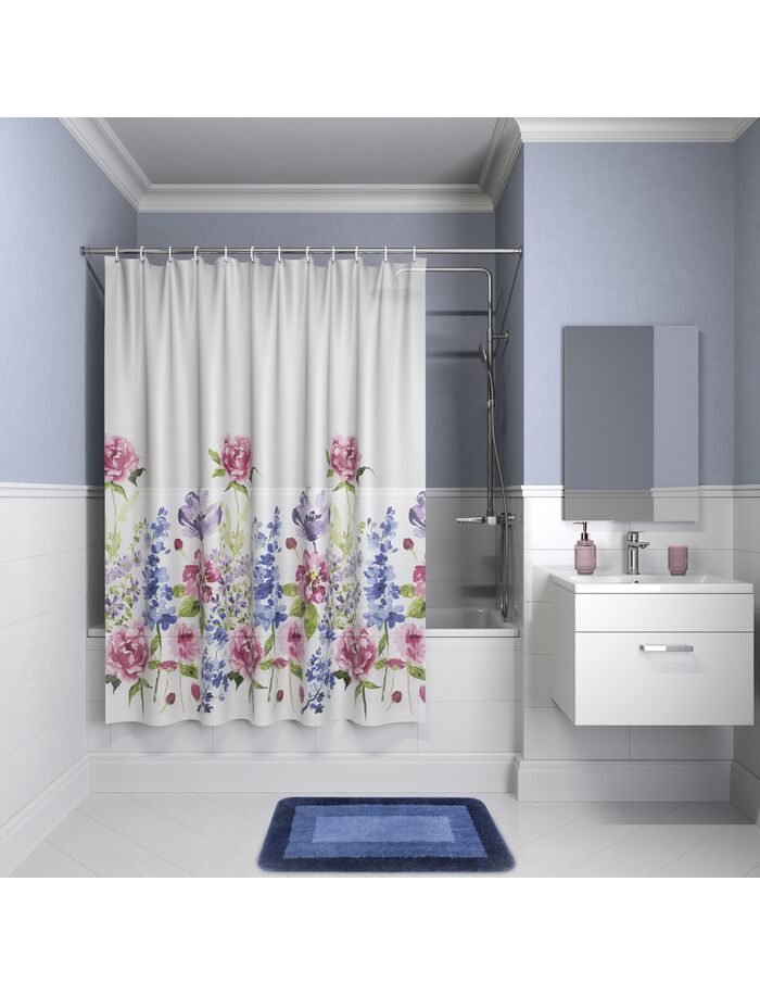 Полупрозрачная штора для ванной белого цвета с красивым цветочным рисунком в акварельных тонах. Изготовлена из современного материала PEVA – мягкого, приятного на ощупь, экологичного и безвредного для здоровья термопластика (толщина 0,09 мм).• Без неприятного запаха, благодаря чему шторку для ванной можно использовать уже в день покупки.