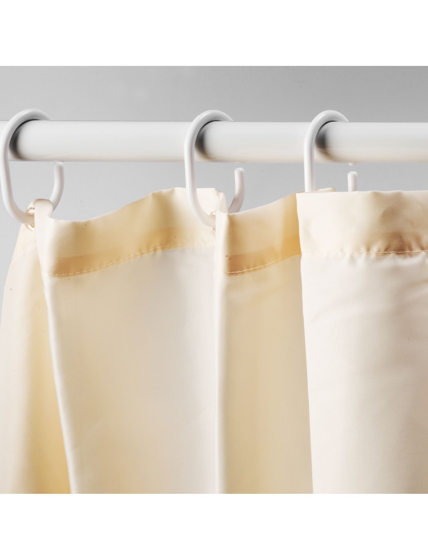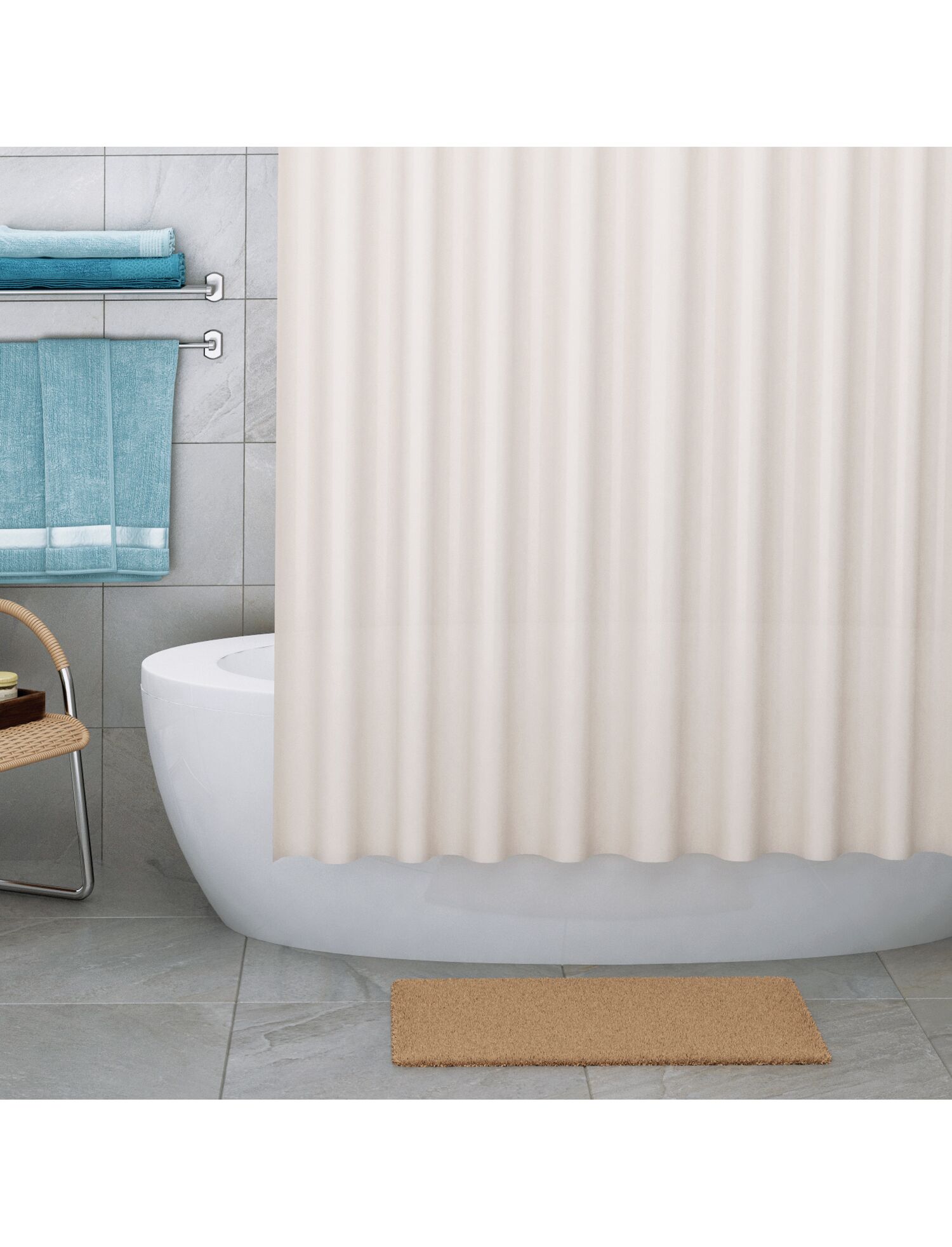 Назначение: Шторка для ванной. Материал: Полиэстер.Монтаж: Пластиковые люверсы. Описание: Размер 1800 х 2000 мм, водоотталкивающая пропитка. Низ шторки оснащен утяжелителем, в комплект входят ластиковые кольца белого цвета, 12 шт. Плотность шторки 90 г/м²