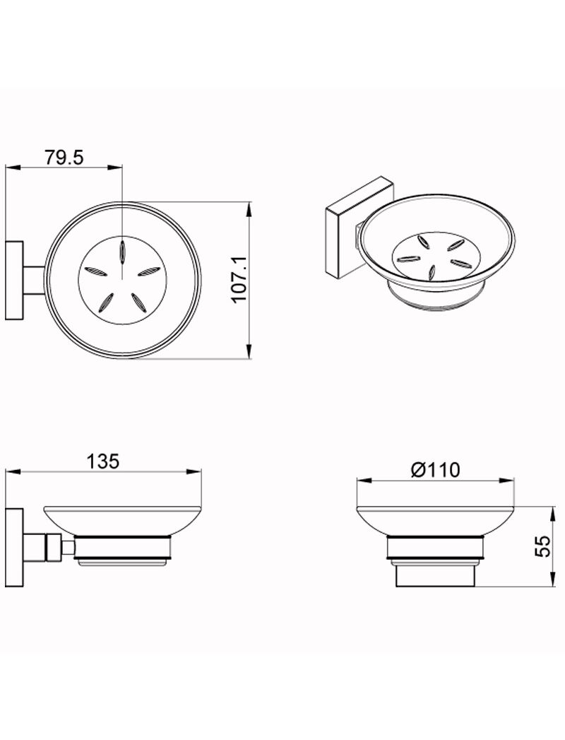 Мыльница Azario RINA Подвесной монтаж, Хром