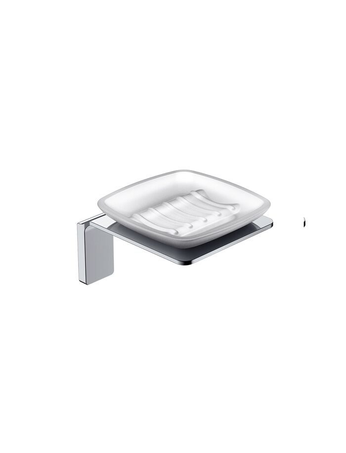 Мыльница Slide из матового белого стекла в хромированном держателе благодаря прямым линиям и функциональному дизайну подойдет для интерьера любой современной ванной.