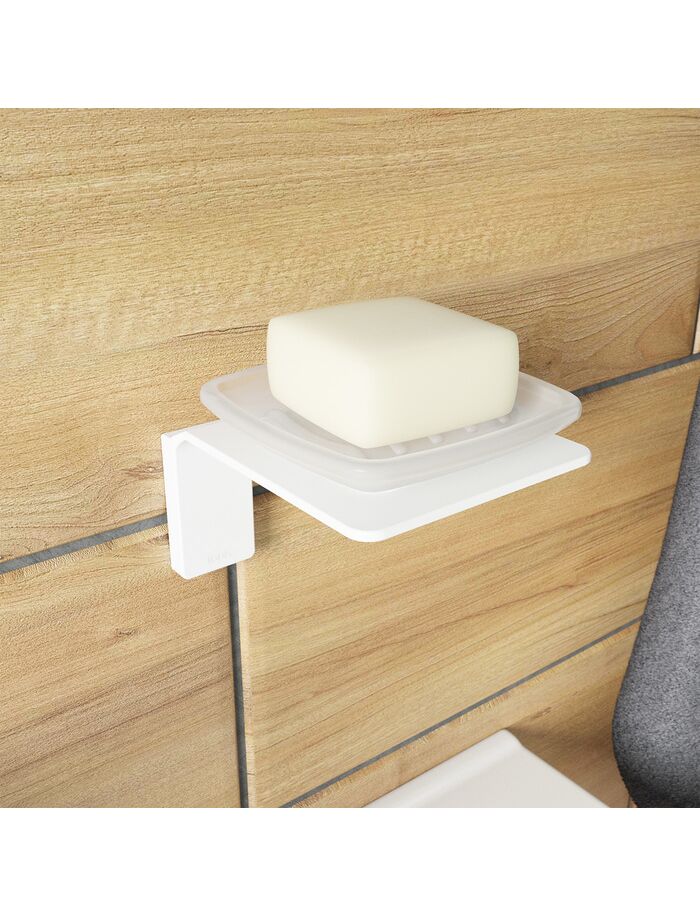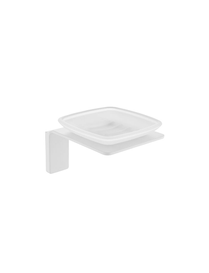 Мыльница Slide из матового белого стекла в держателе белого матового цвета. Благодаря прямым линиям и функциональному дизайну подойдет для интерьера любой современной ванной.
