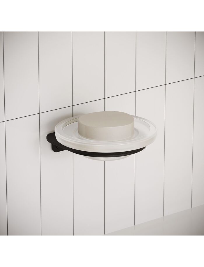 Каждый предмет из новой коллекции NOA минималистичен на вид и максимально функционален, благодаря чему способен выгодно подчеркнуть любой современный или классический дизайн. Коллекция представлена всеми необходимыми аксессуарами для создания единого стиля туалетной или ванной комнаты – с ними ежедневный уход станет еще более комфортным. Мыльница из матового стекла в стильном обрамлении трендового черного цвета будет элегантно смотреться в темных интерьерах и мягко балансировать яркие, цветные. Отличительная особенность аксессуара – его форма, которая подойдет как для обычного, так и для фигурного мыла, позволив сэкономить место на раковине за счет настенного крепления.• Мыльница IDDIS® прослужит дольше благодаря прочной и стойкой к коррозии стали.