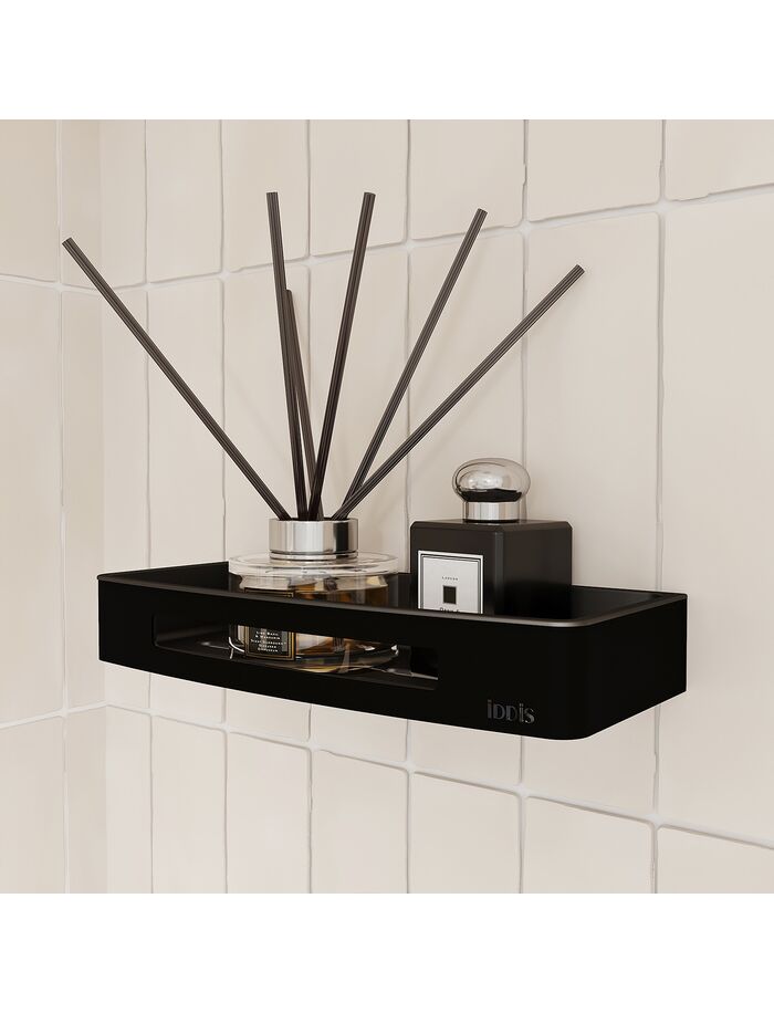 Черная полка для ванной комнаты вместит все необходимое для комфортного принятия душа. Размер 300х128 мм. Благодаря универсальному стилю подойдет для любой туалетной комнаты.• Долговечное основание полки выполнено из антикоррозийной полированной нержавеющей стали, благодаря чему она прослужит дольше во влажном помещении ванной комнаты. Черное покрытие выполнено надежным методом электроплейтинга