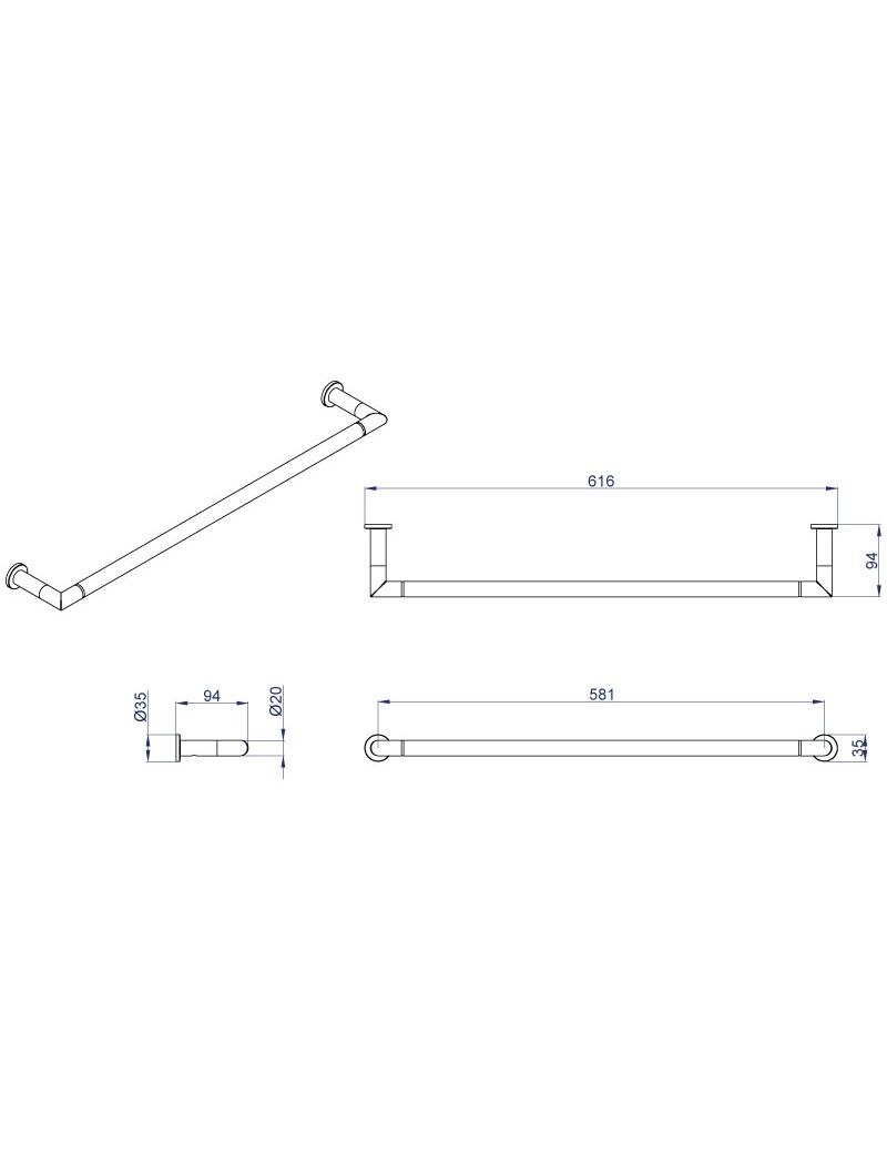 Полотенцедержатель AZARIO FORNY трубчатый одинарный 58 см, хром