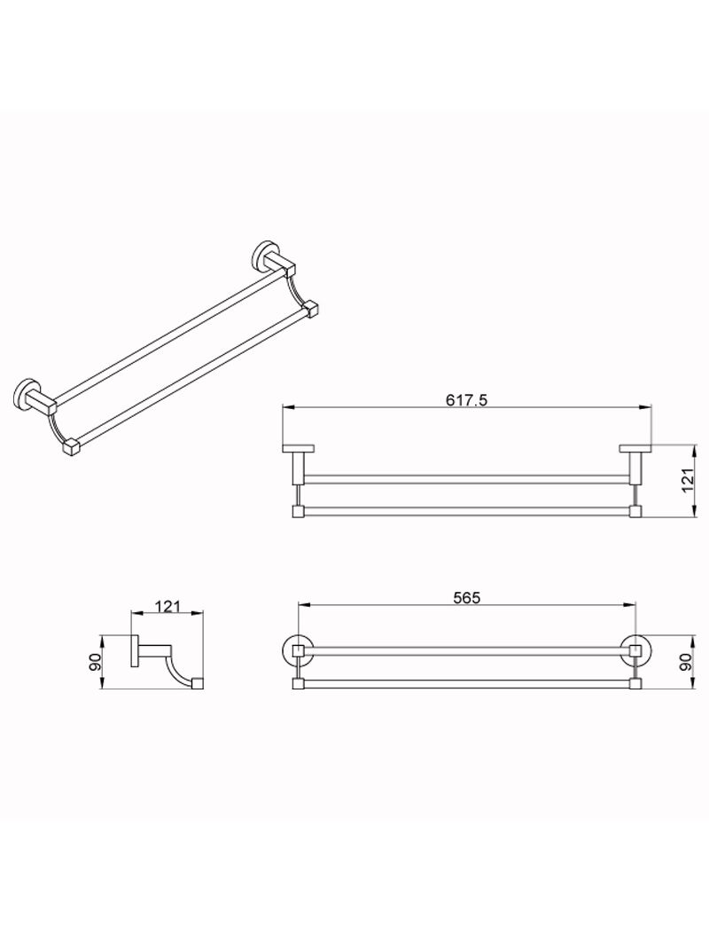Полотенцедержатель AZARIO NESSY трубчатый двойной 58,5 см, хром