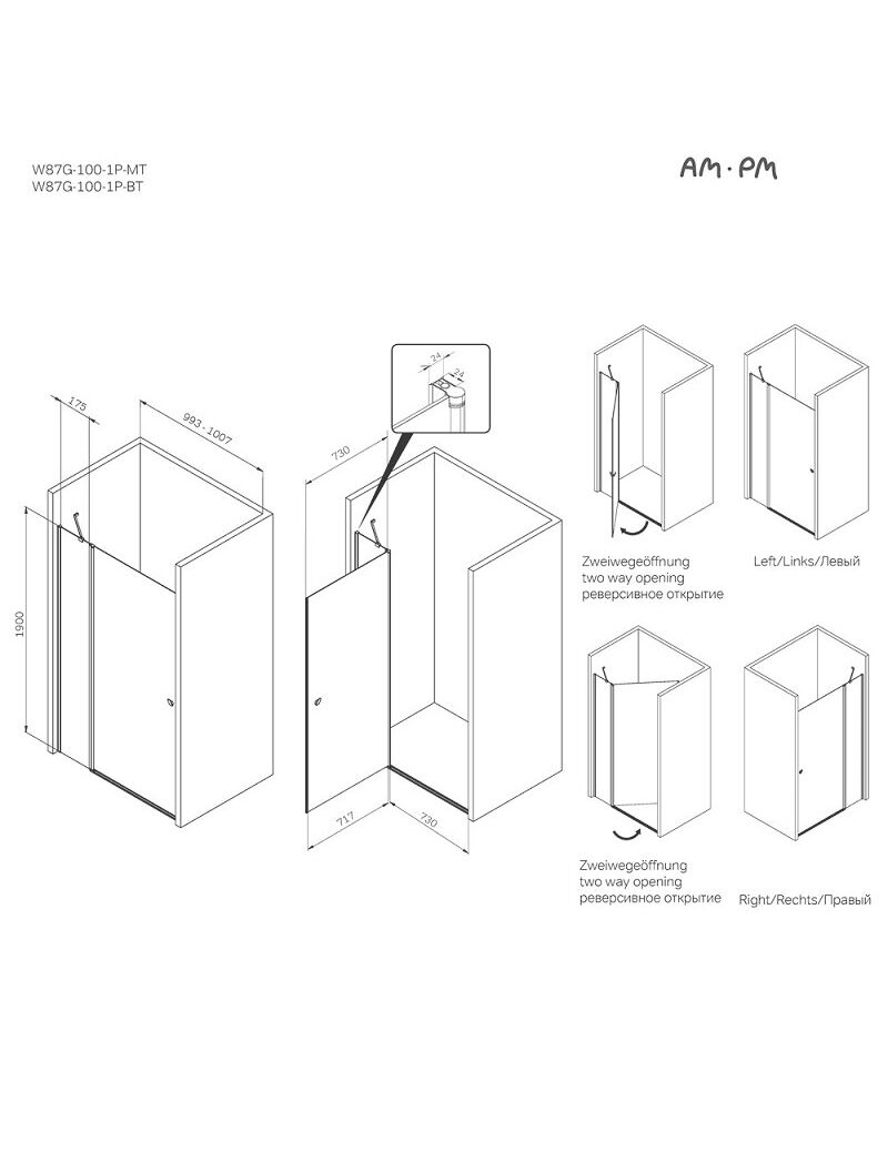 Душевая дверь 100x190 AM.PM Sunny W87G-100-1P-MT прозрачное стекло, профиль серебристый