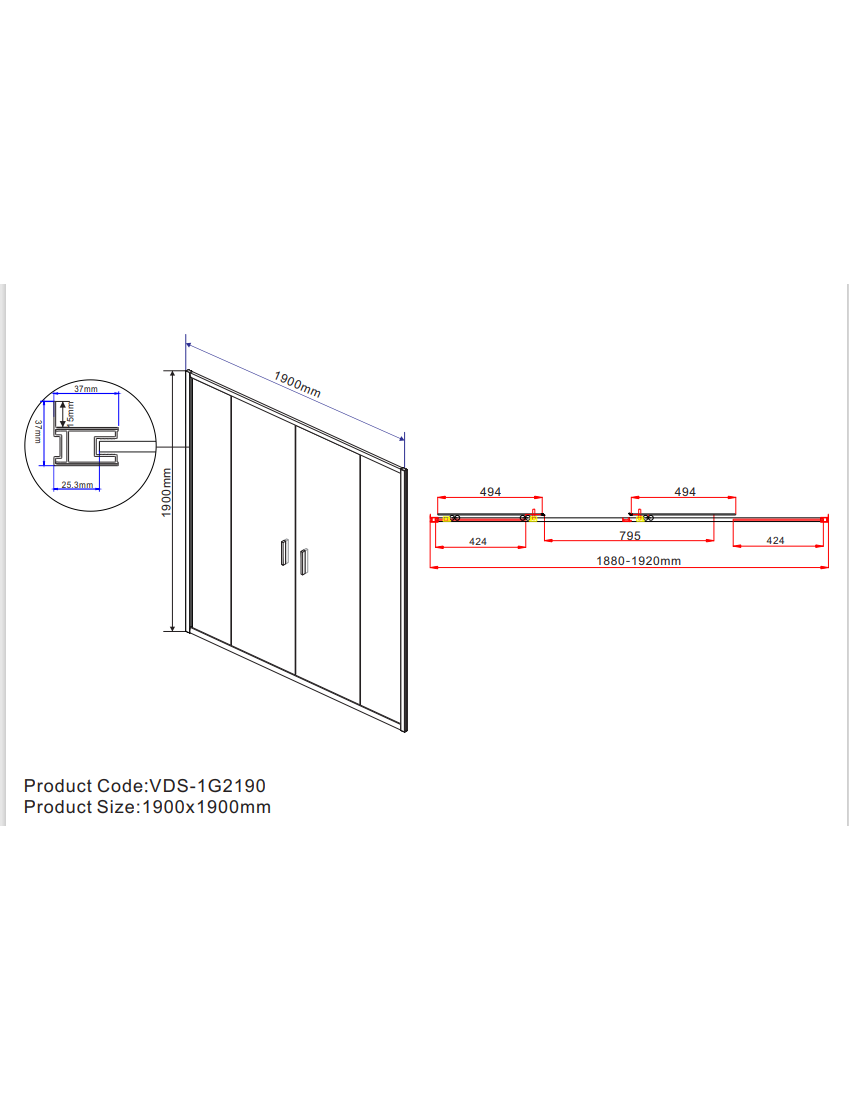 Душевая дверь Garda VDS-1G2190CH, 1900, хром, стекло шиншилла, , шт