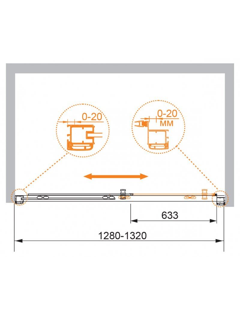 Душевая дверь в нишу Cezares Anima BF-1 130 профиль Хром стекло прозрачное