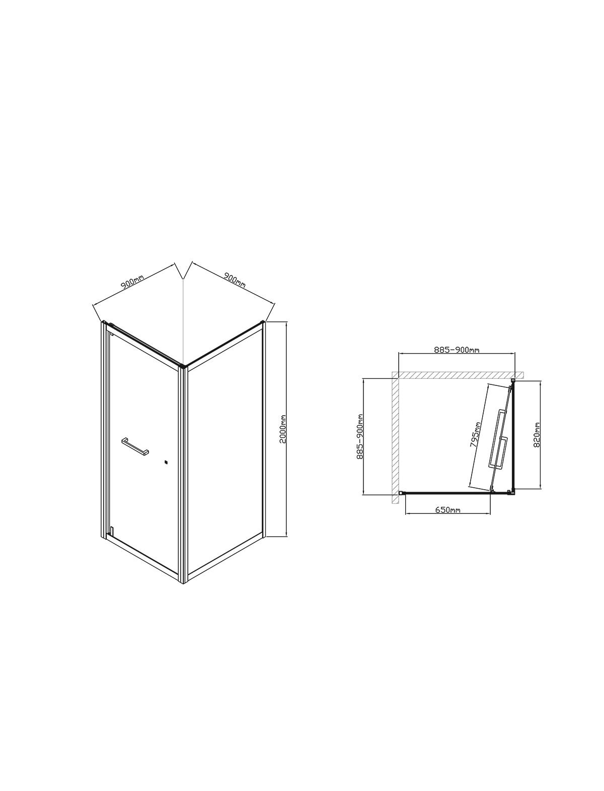 Боковая панель для душевого уголка Stile VSS2-2ST9090CLB-R, черный, стекло прозрачное, , шт
