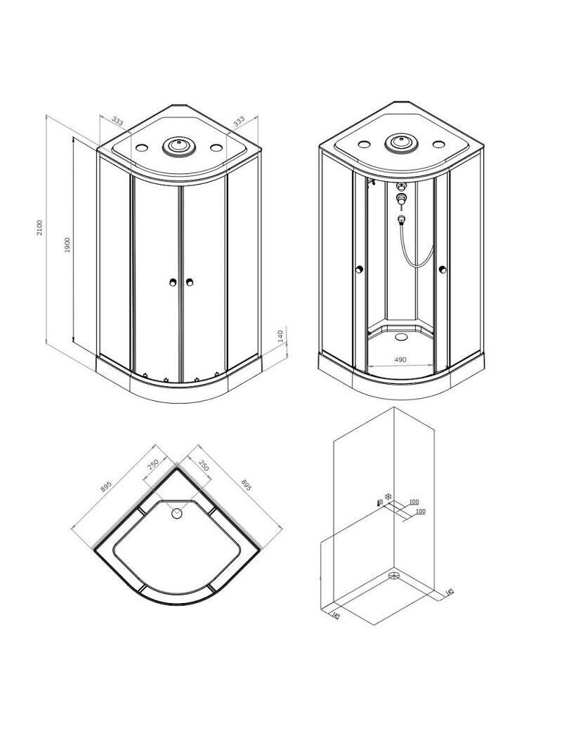 W94C-401-090MT X-Joy кабина душевая 90x90, 1/4 круга, профиль мат.хром, стекло прозрачное