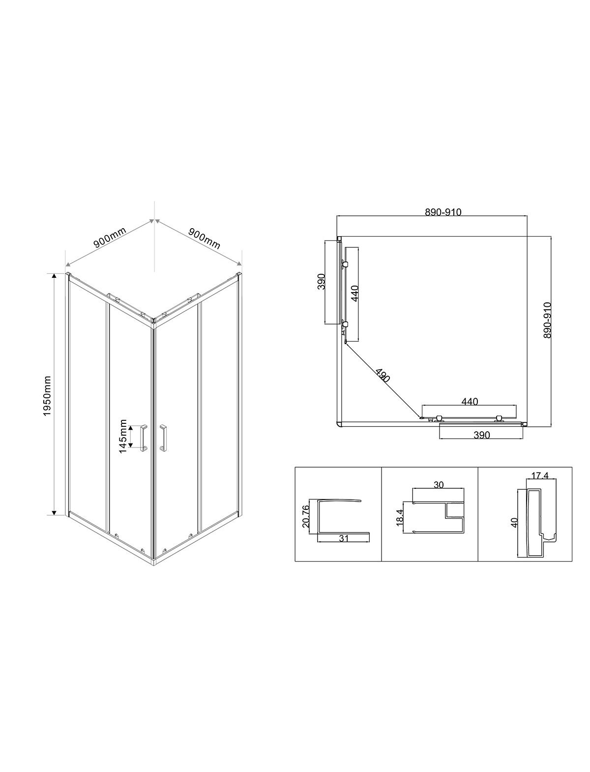 Душевой уголок City VSS-5CT900MT, 900*900, хром, стекло текстурное, , шт