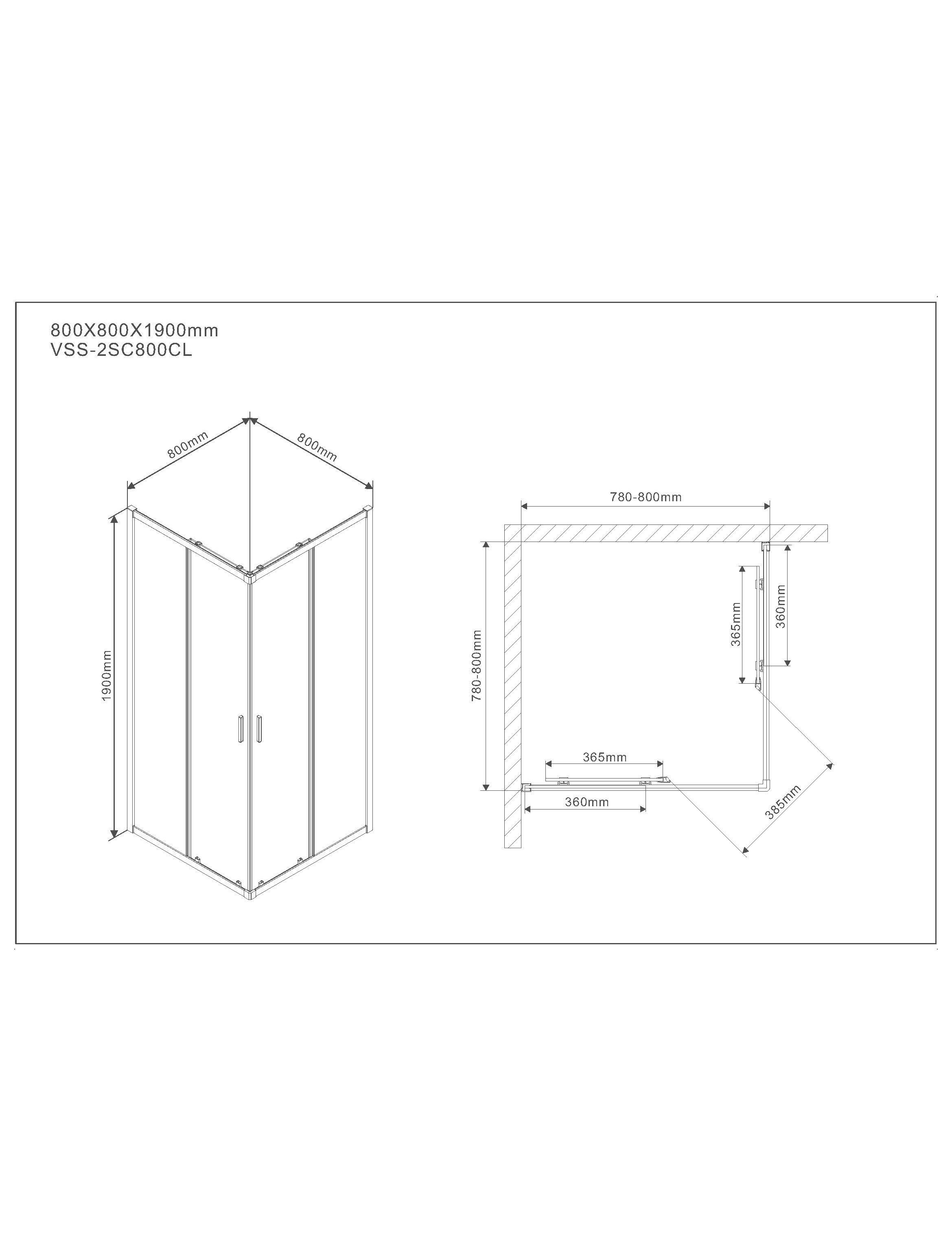 Душевой уголок Scala VSS-2SC800CL, 800*800, хром, стекло прозрачное, , шт