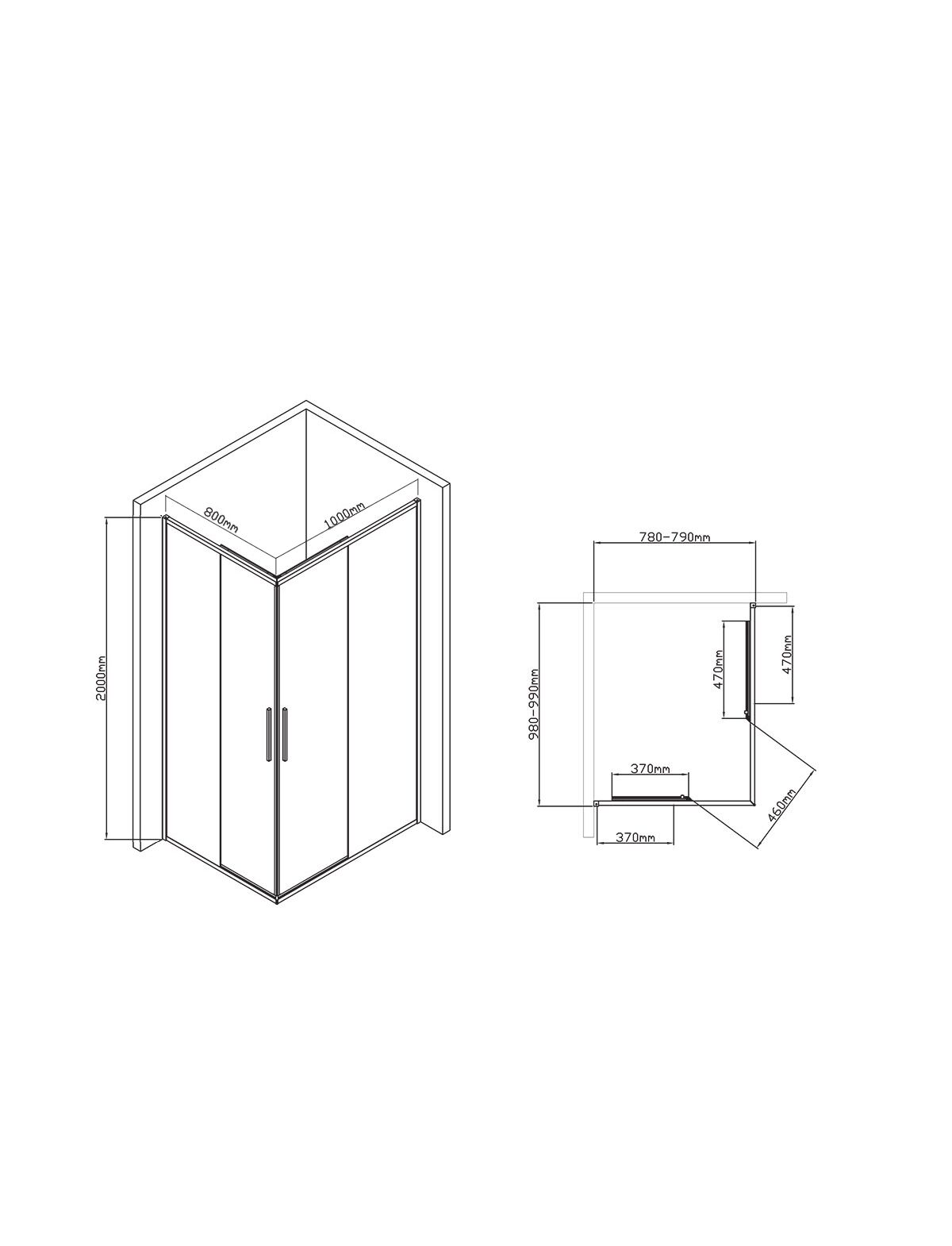 Душевой уголок Slim-U VSS-2SU8010CL, 1000*800, хром, стекло прозрачное, , шт