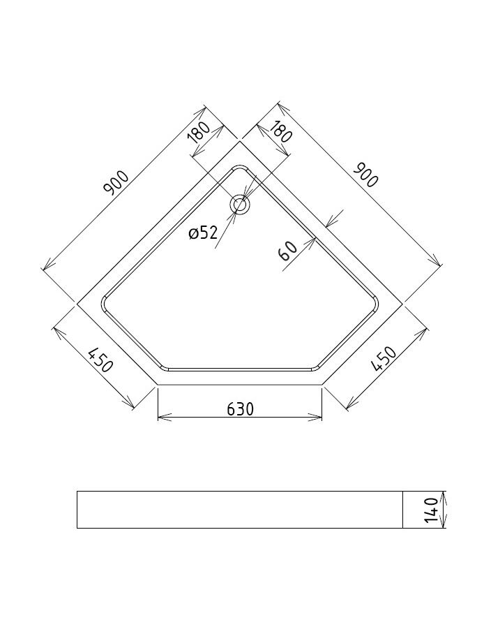 Акриловый поддон для душа Gemy 90х90х16 пятиугольный Белый