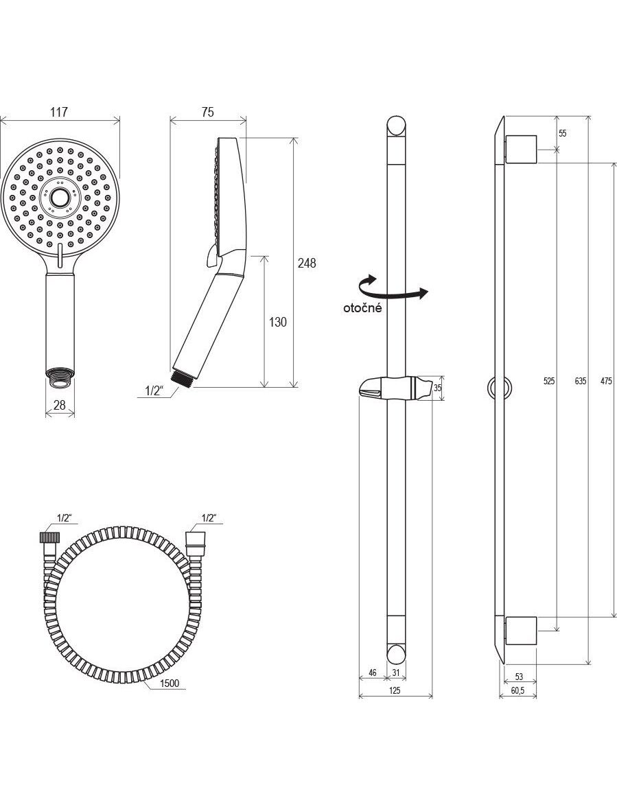 - Подвижный душевой держатель H - 84 cм.