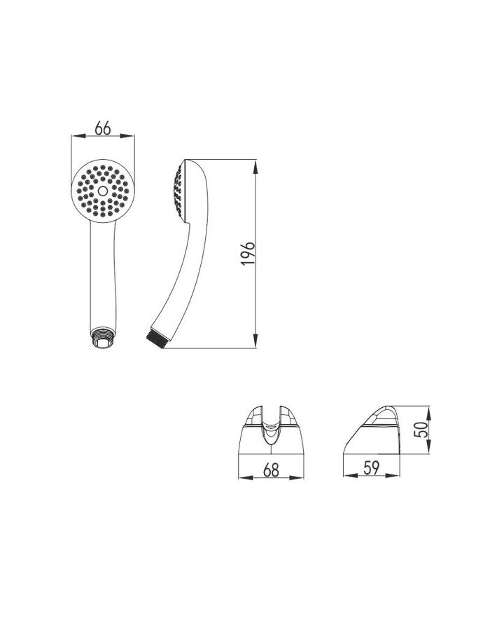 Душевой комплект. Лейка для душа 1 F (дождь), d 66 мм (ABS пластик, хром), держатель для лейки, шланг для душа, (1,5 м с системой Double lock, оплетка из нерж. стали)