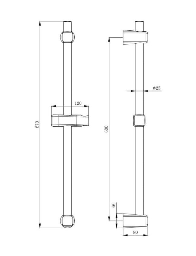 AQB02CR душевая штанга BASIC 600 мм (хром)